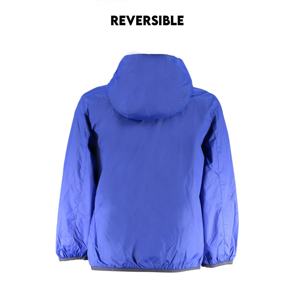 Reversible jacket, long sleeves with hood, 2 internal pockets, 2 external pockets, application, print, zip, logo, organic cotton