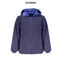 Long sleeved jacket with hood, reversible bluette/blue, 2 external pockets, 2 internal pockets, zip, application, print, logo