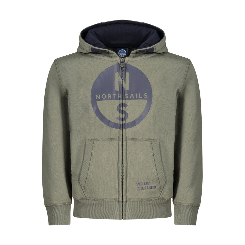 Long-sleeved sweatshirt, 2 central pockets, zip, print, logo, ocean positive