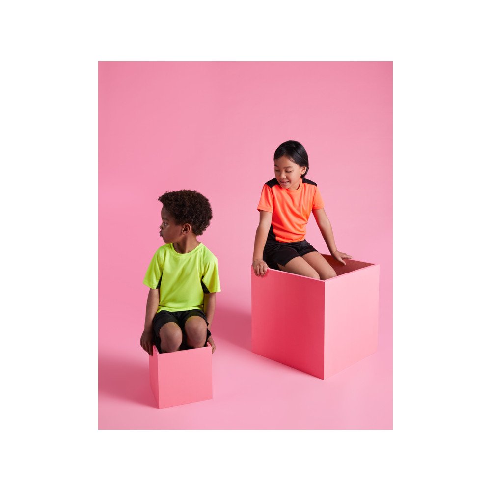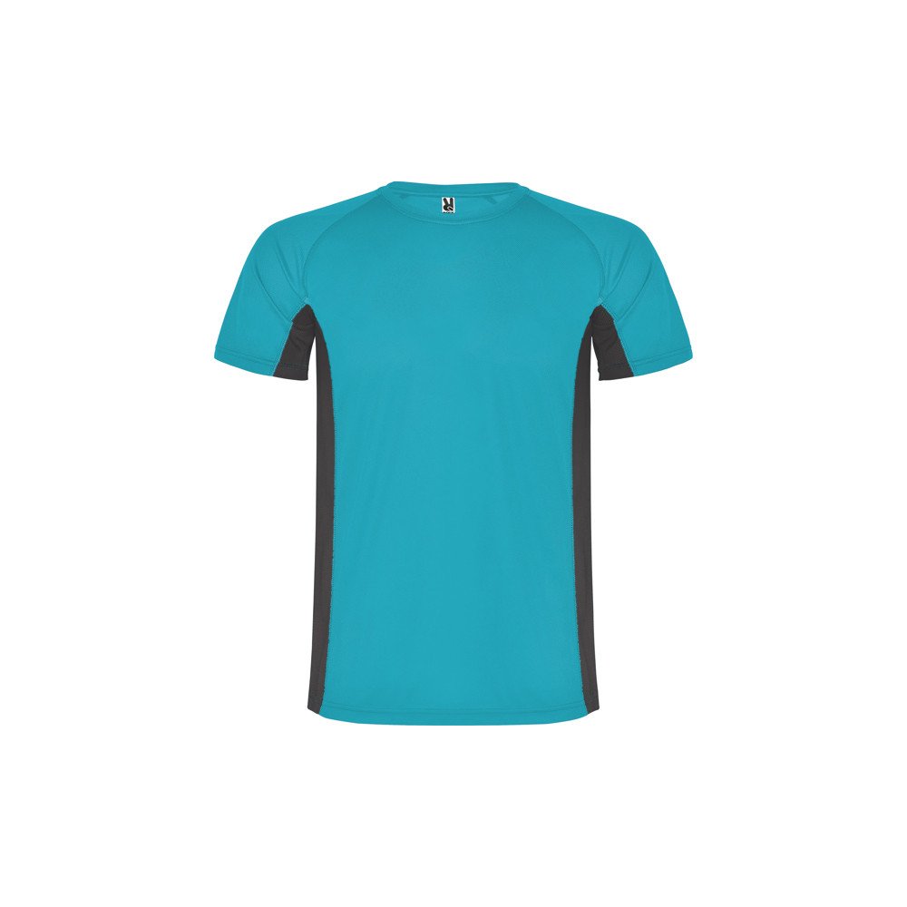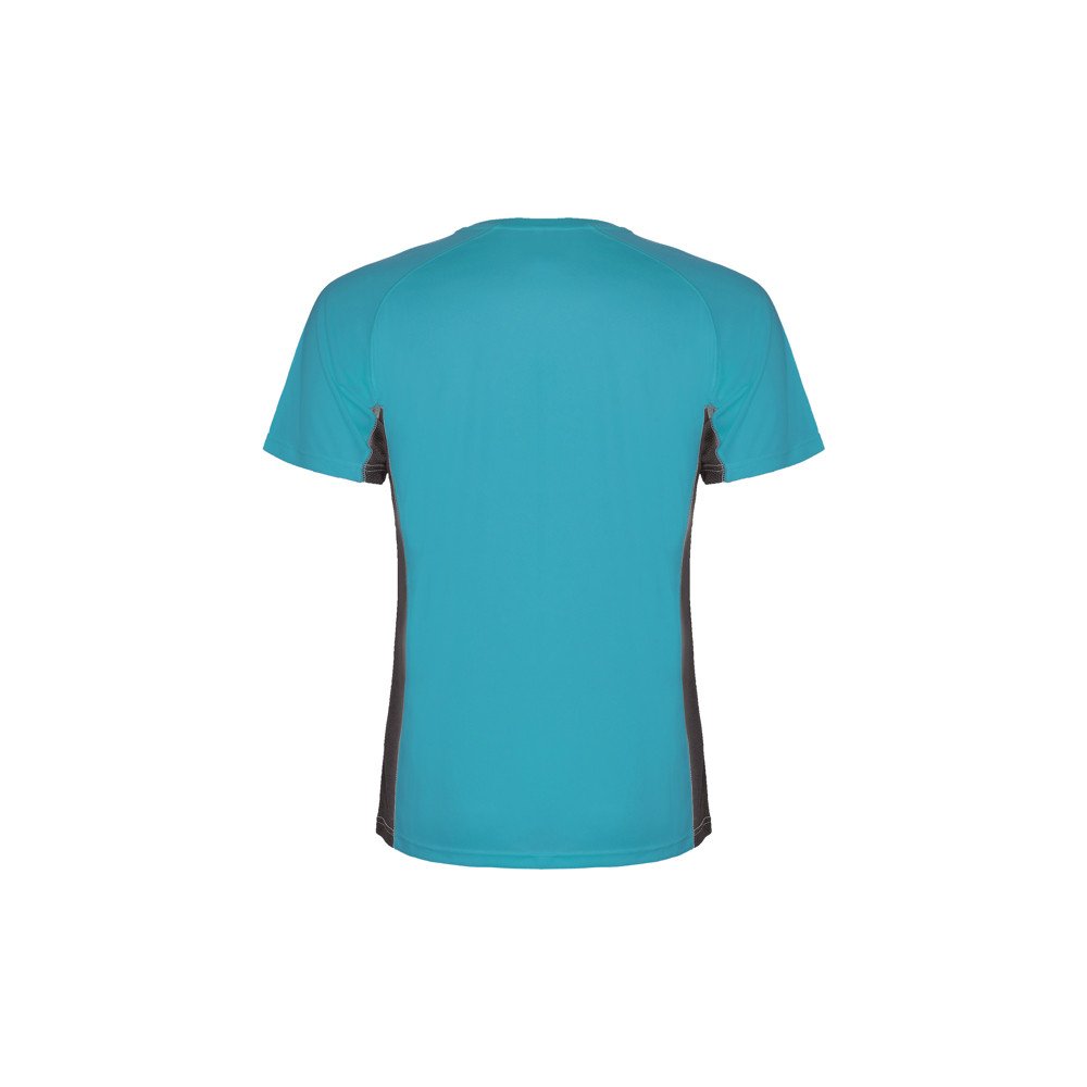 Technical t-shirt with a combination of two polyester fabrics and short-sleeve raglan style. Main fabric in birds's eye, side panels and inner sleeve in microperforated fabric. Crew neck with inner reinforced covered seams. Comfortable and easy-fitting fabric.