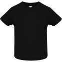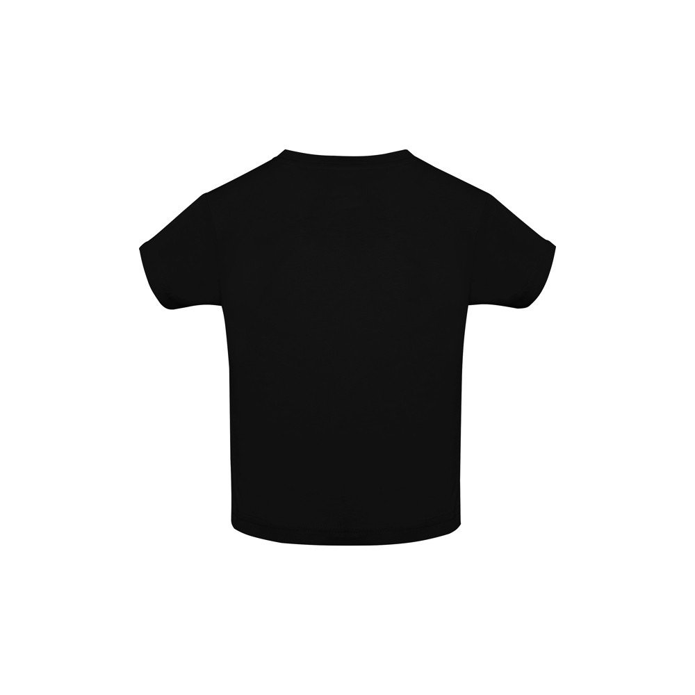 Short-sleeve t-shirt, special for babies. Fine gauge fabric with compacted finishing. Crew neck and placket in shoulder with snap buttons from size 6m to 18 m. Size 2 years with no placket in shoulder. Side seams.