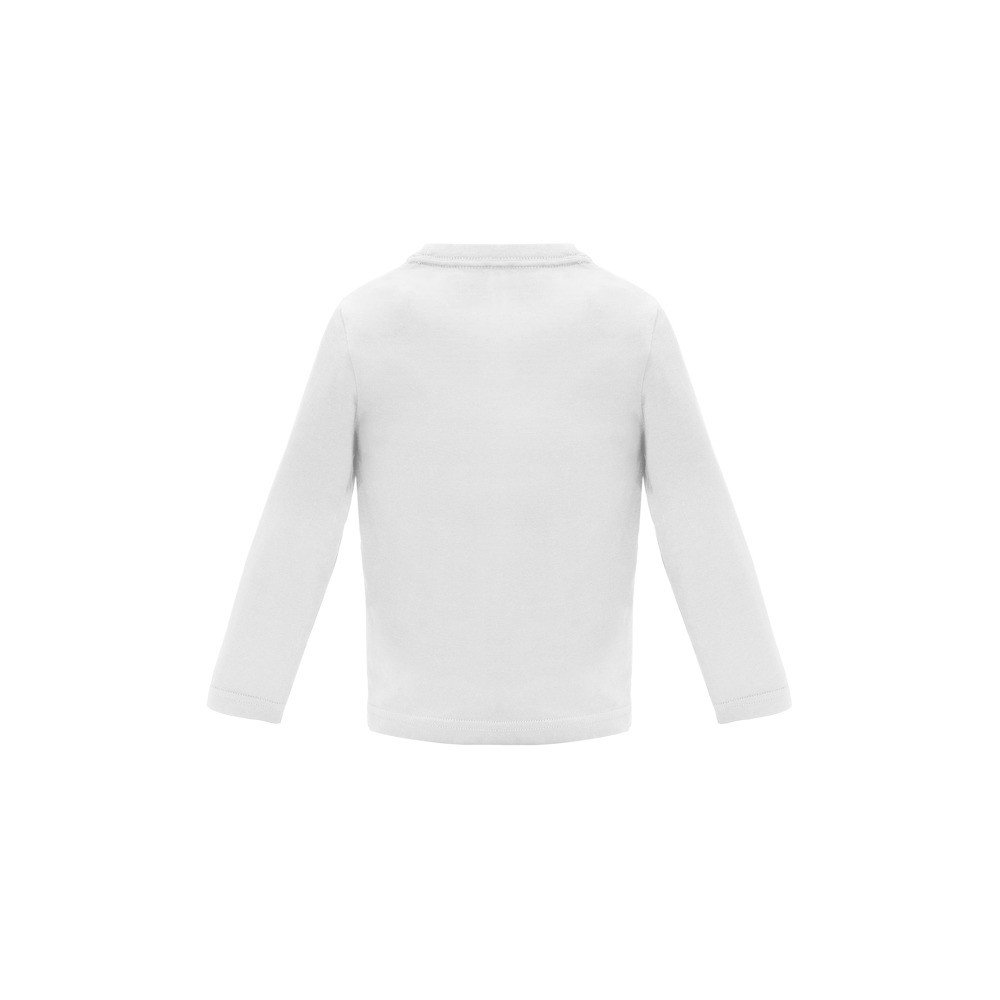 Long-sleeve t-shirt, special for babies. Fine gauge fabric with compacted finishing. Crew neck and placket in shoulder with snap buttons from size 6M to 18M. Size 2 years with no placket in shoulder. Side seams.