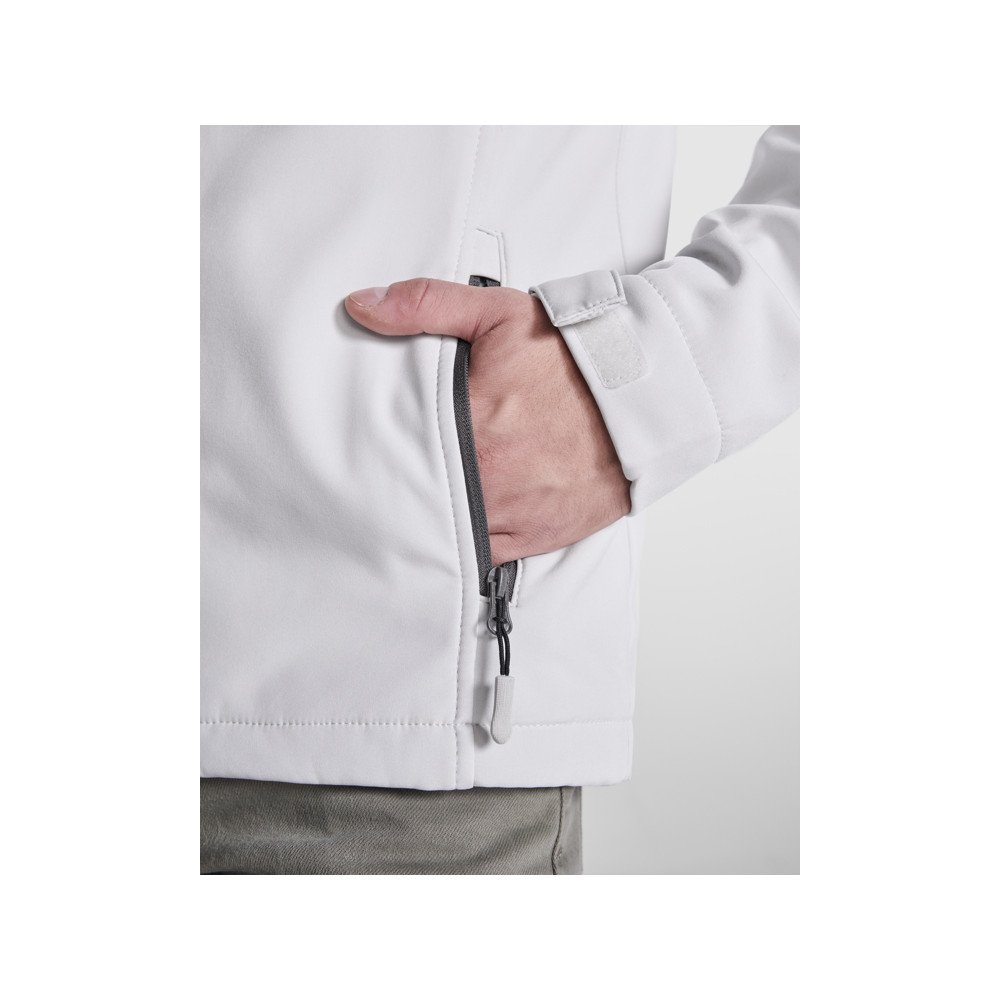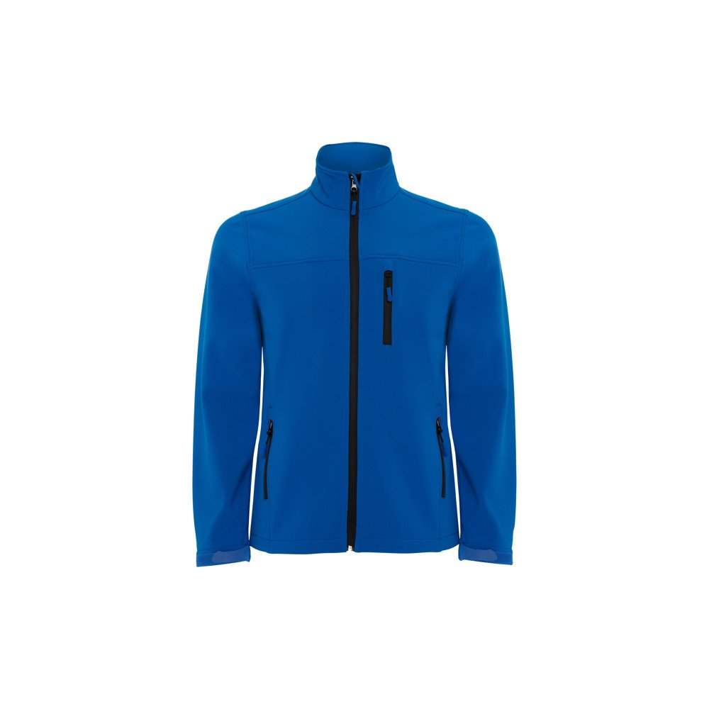 2-layer softshell with warm inner lining in microfleece fabric. Inverted central zip with matching chin protector and puller. Cut detail on chest. Two side pockets and a zipped one on chest. Velcro fasteners in cuffs. Hem with inner side adjusters.