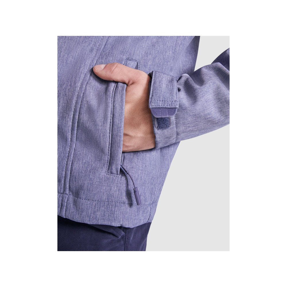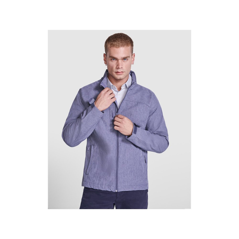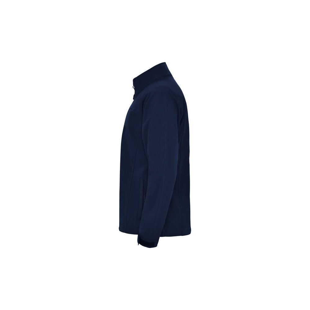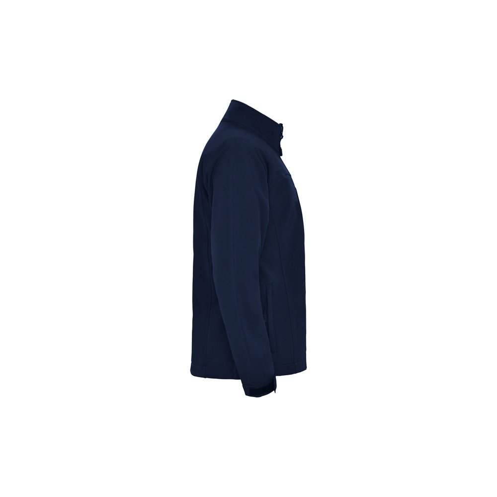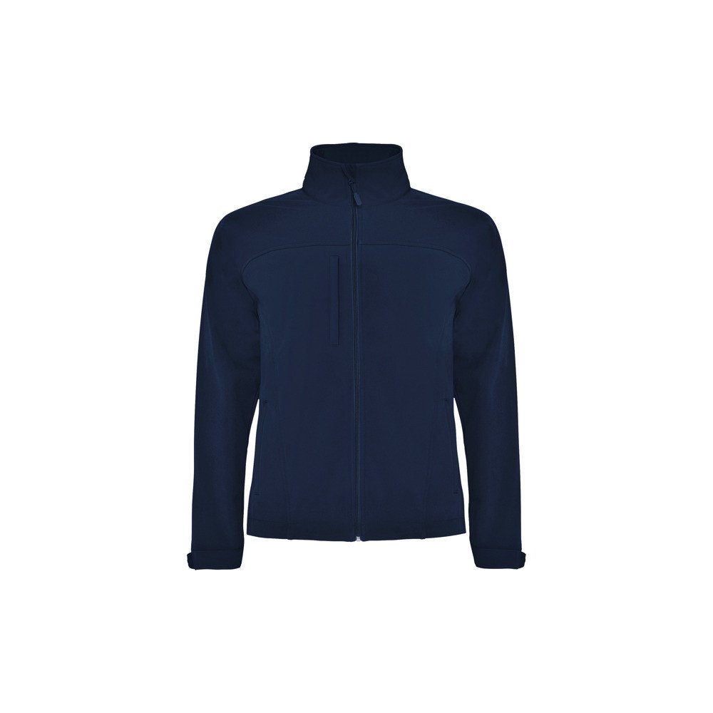 3-layer softshell jacket with full zip, chin protector and puller. Two side pockets and one on the chest with zipper and puller. Velcro fasteners in cuffs. Yoke-shaped area on chest and back. Hem with inner side adjusters.