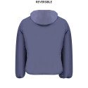 Long sleeved jacket with hood, reversible blue/royale blue, 2 external pockets, 2 internal pockets, zip, application, logo