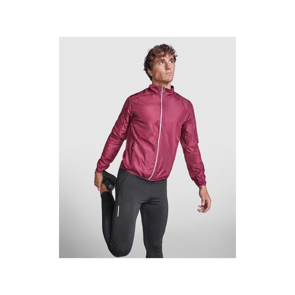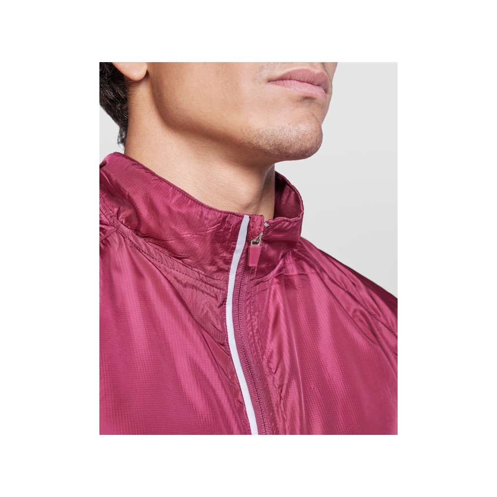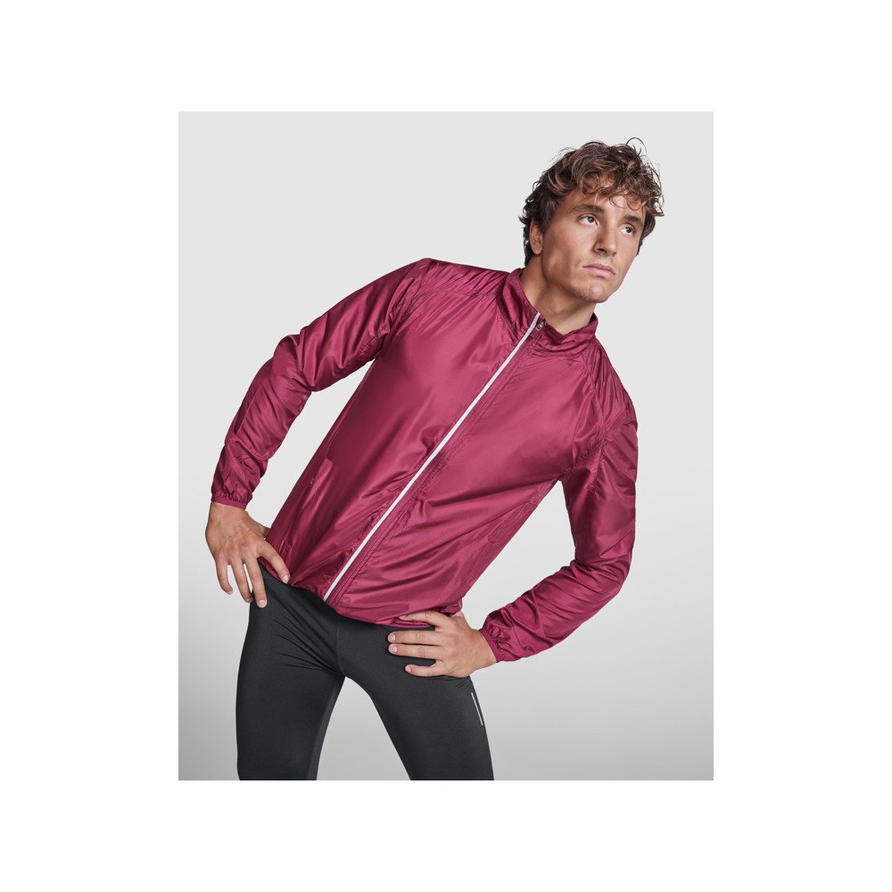 Light and breathable windbreaker jacket.· Lined inner neck with covered seams.· Inverted front zip with high-visibility detail, chin protector and puller.· Breathable fabric on the armholes.· Side pockets with inverted zippers.· Inside pocket to fold the garment.· Cuffs and hem with elastic trim.· High-visibility details on the back.