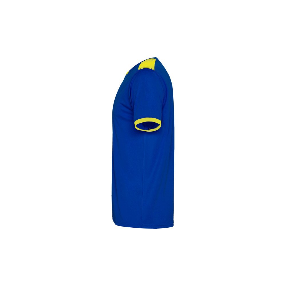 Unisex sports set consisting of 2 t-shirts + 1 pair of shorts.1.- Short-sleeves with wide contrasting rib.2.- The colour of the second t-shirt is combined in the opposite way.3.- Crew neck with two-colour rib and reinforced covered inner seams.4.- Shorts with elastic waistband, matching inner drawcord and safety stitching.