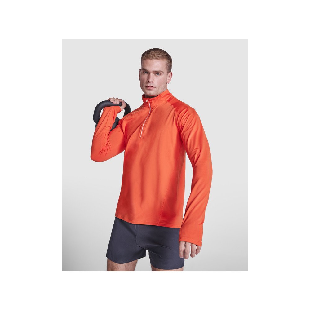 Long-sleeve technical raglan sweatshirt Collar with a half zip inverted design featuring a reflective detail. Reinforced seam covers. Cuffs with thumb openings. Reflective details on the back. Back hem slightly longer than the front. Warm brushed inner fabric.