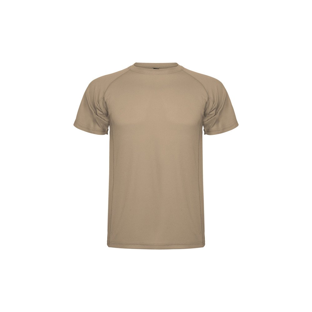 Short-sleeve technical raglan t-shirt. Crew neck with matching covered seams. Matching overlocked panels in sleeves and sides.