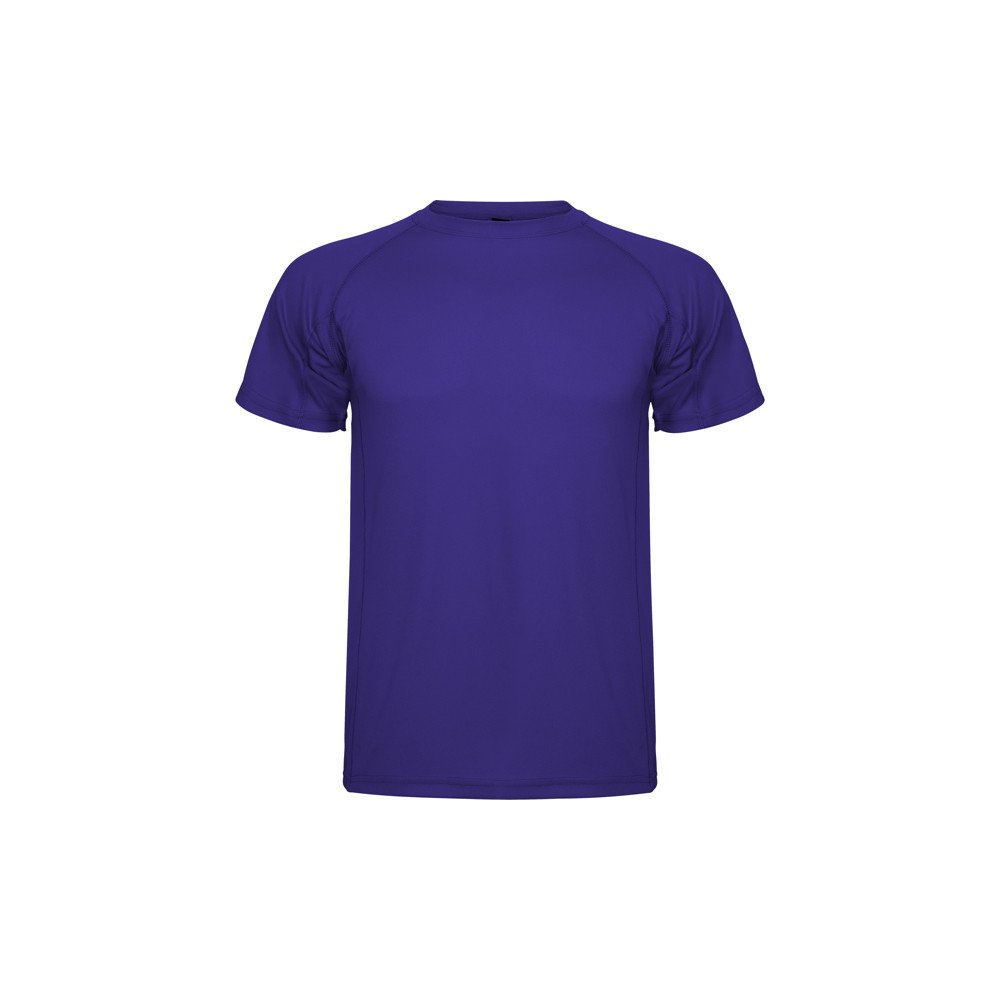 Short-sleeve technical raglan t-shirt. Crew neck with matching covered seams. Matching overlocked panels in sleeves and sides.