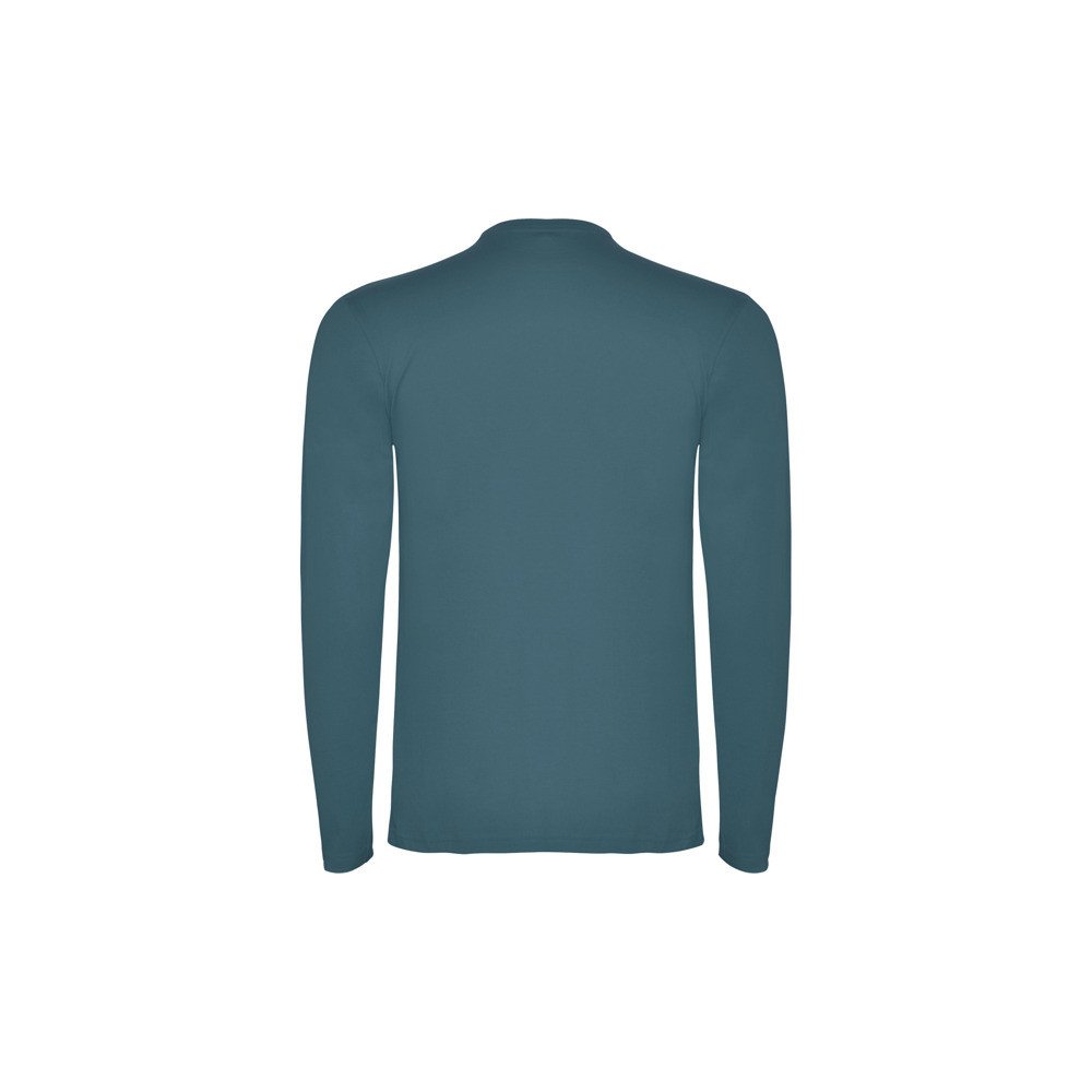 Long-sleeve t-shirt in tubular fabric and 4-layer crew neck. Reinforced covered seams in collar and shoulders. No cuffs.