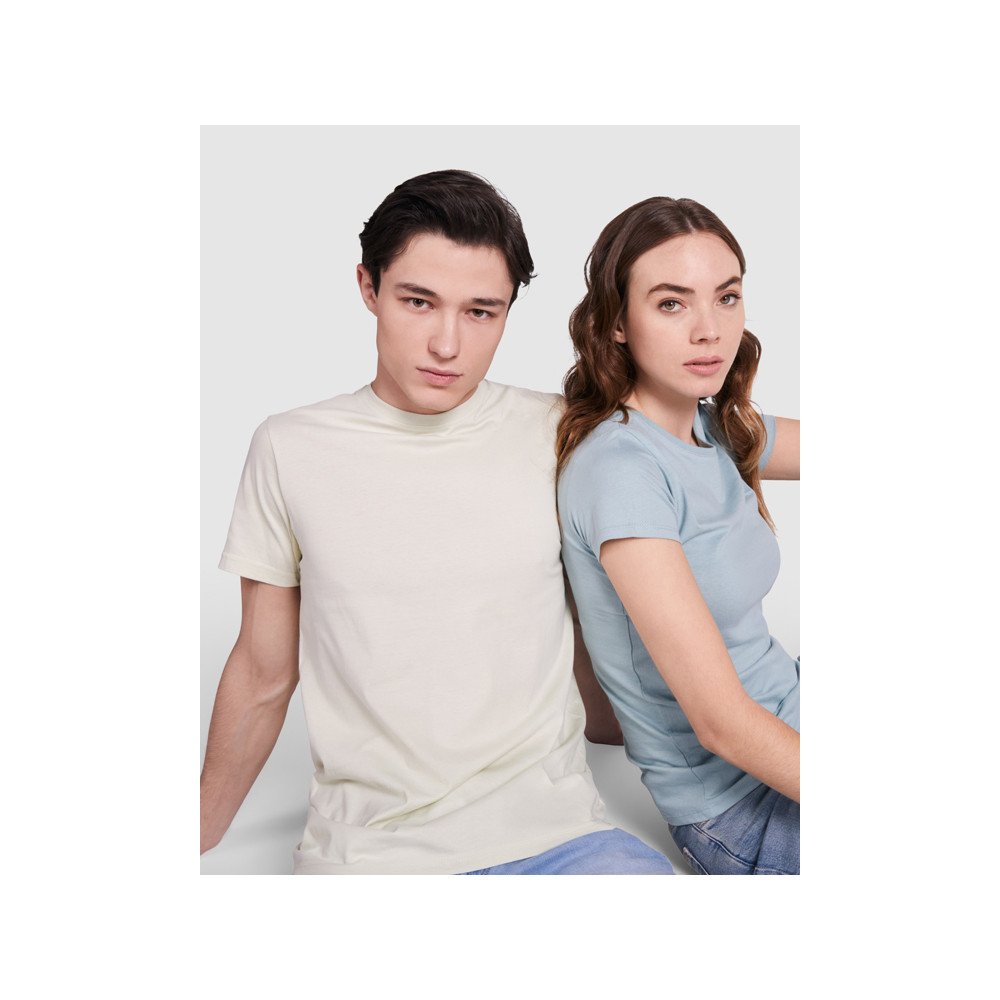 Tubular short-sleeve t-shirt. Crew neck with elastane. Side seams in kids sizes.