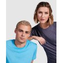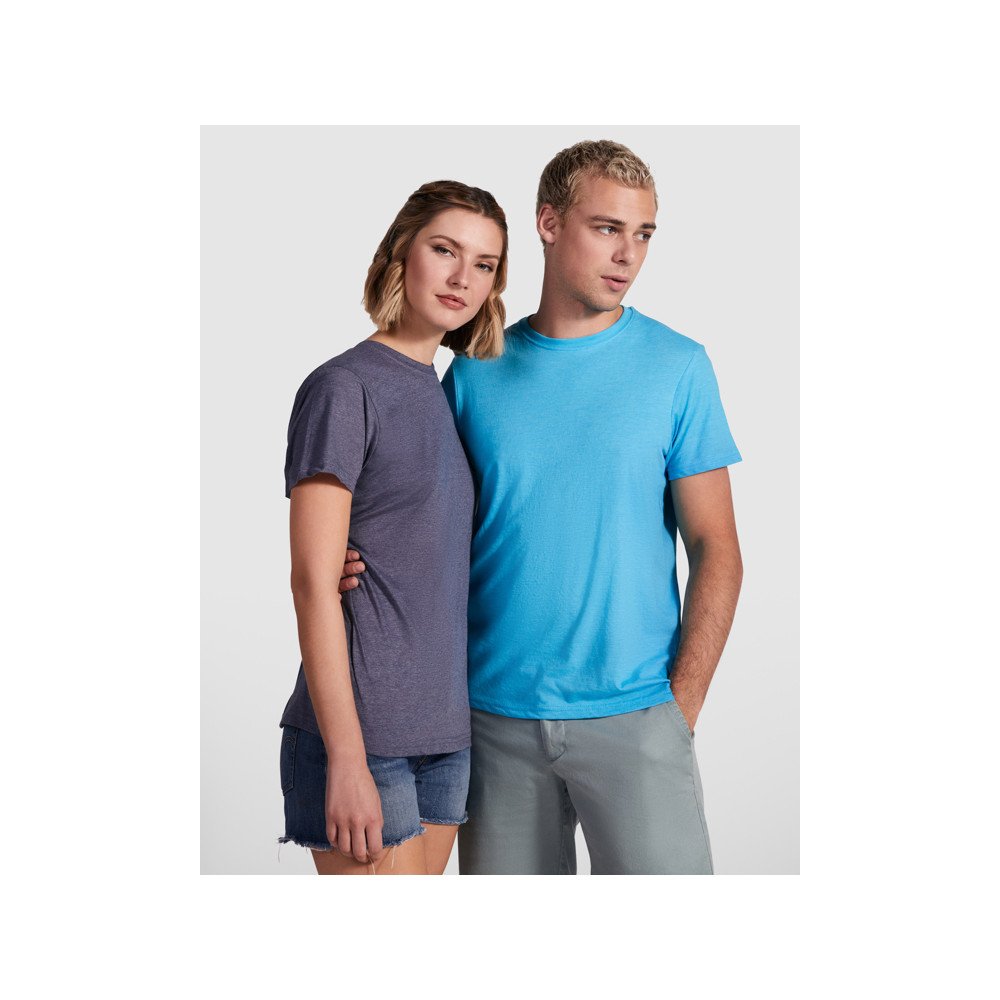 Short-sleeve t-shirt in heather effect. 1x1 ribbed crew neck with interior reinforced covered seams. Tubular fabric.