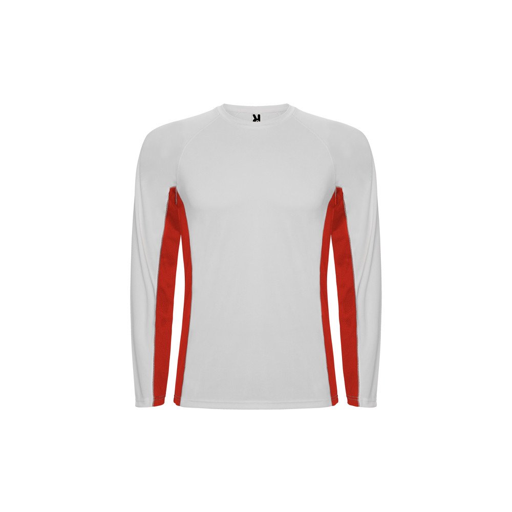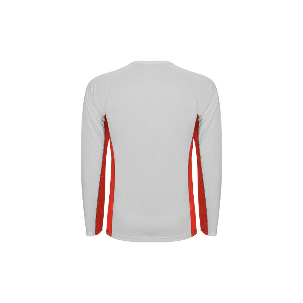 Long-sleeve technical raglan t-shirt with a combination of two polyester fabrics. Main fabric in honeycomb, and side panels and inner sleeve in microperforated fabric. Crew neck with reinforced covered seams. Comfortable and easy fitting fabric.