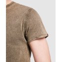 Short-sleeve t-shirt in a jeans effect design. 1x1 ribbed crew neck with interior reinforced covered seams from shoulder to shoulder. Double seam in armholes. Sleeves opening with rolled hem.