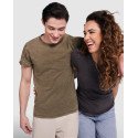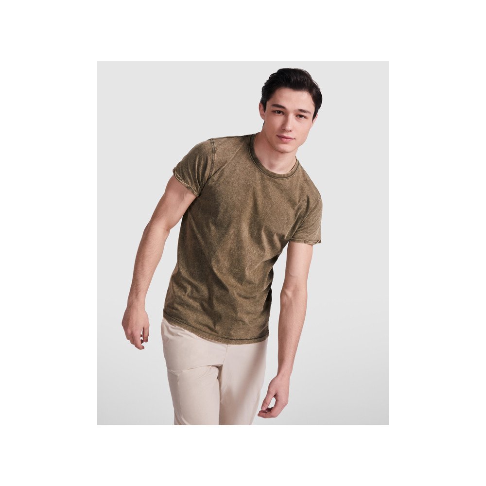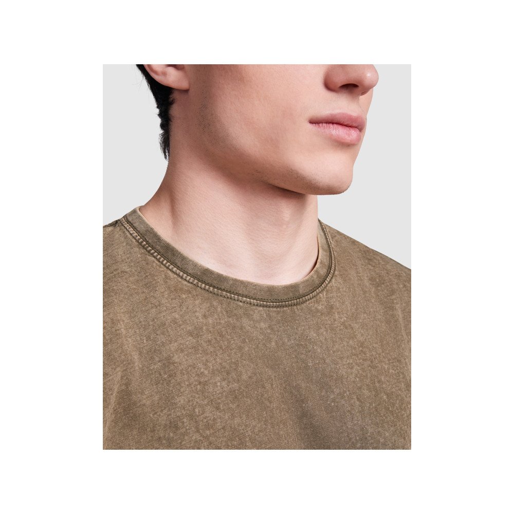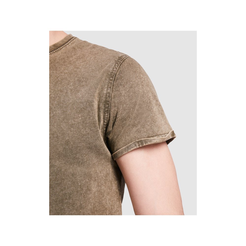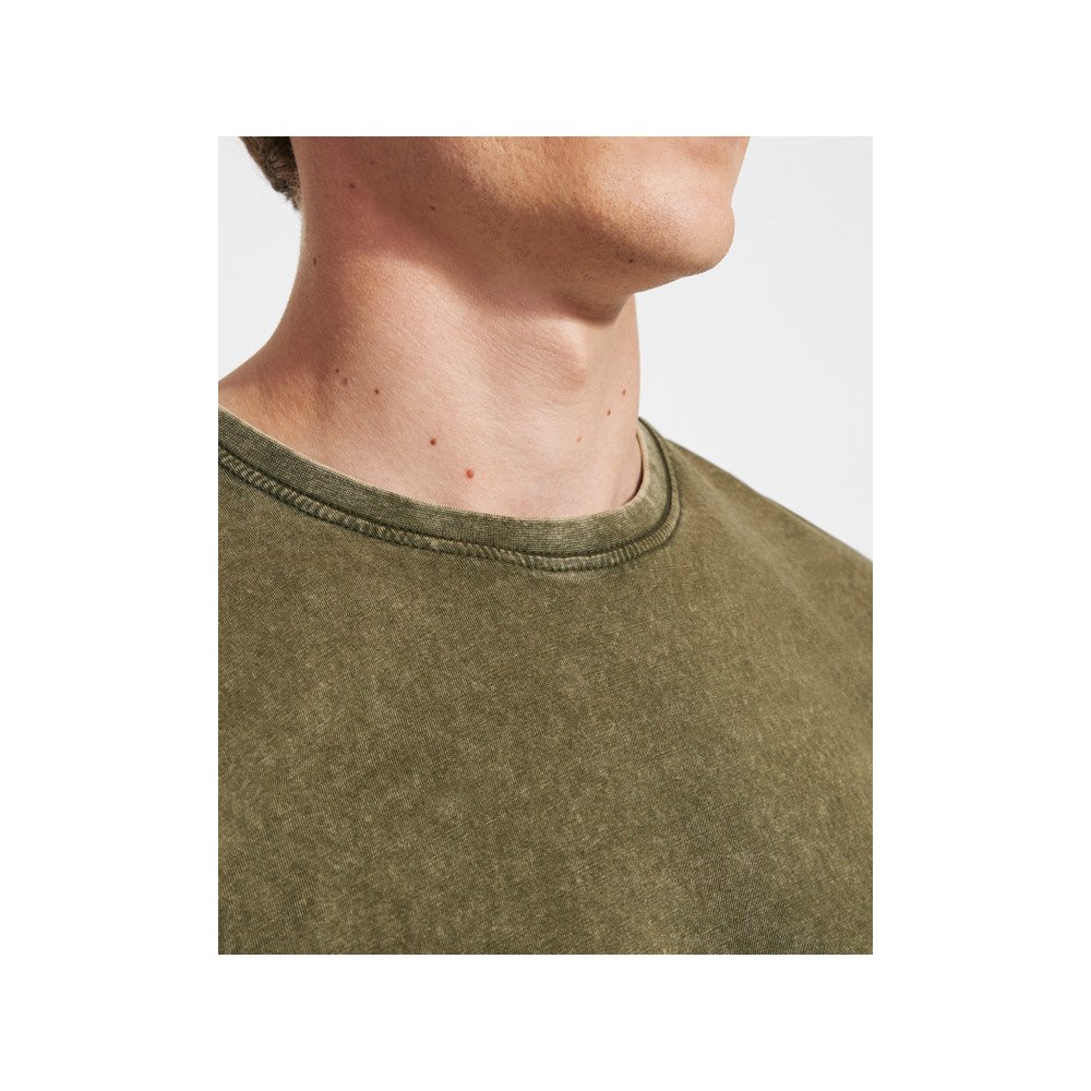 Short-sleeve t-shirt in a jeans effect design. 1x1 ribbed crew neck with interior reinforced covered seams from shoulder to shoulder. Double seam in armholes. Sleeves opening with rolled hem.