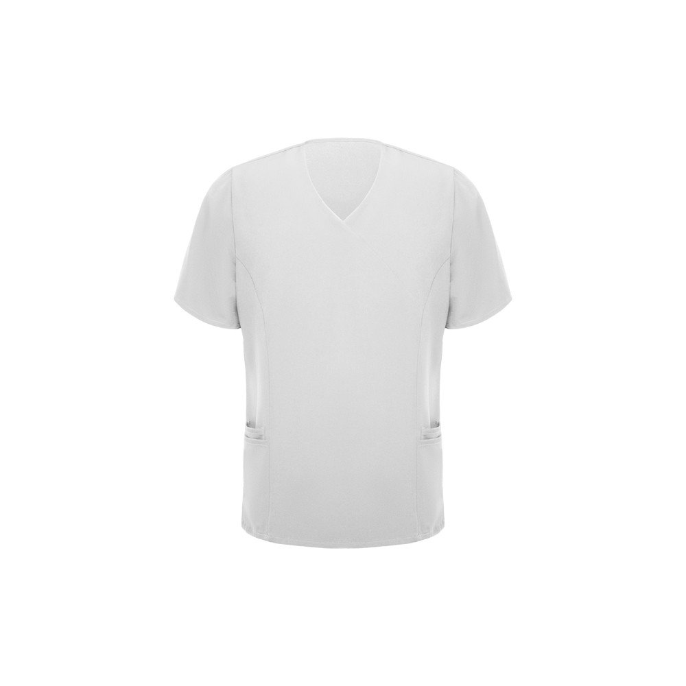Short-sleeve service top.· Crossed peak neckline.· Two French pockets.