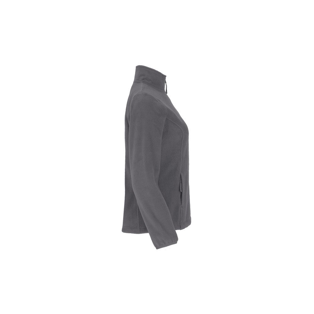 Fleeced jacket with high lined collar and matching reinforced covered seams. Injected zip with matching puller made of fabric. Cuffs with elastic trim. Side pockets. Fitted-cut. Bottom hem with inner side adjusters.