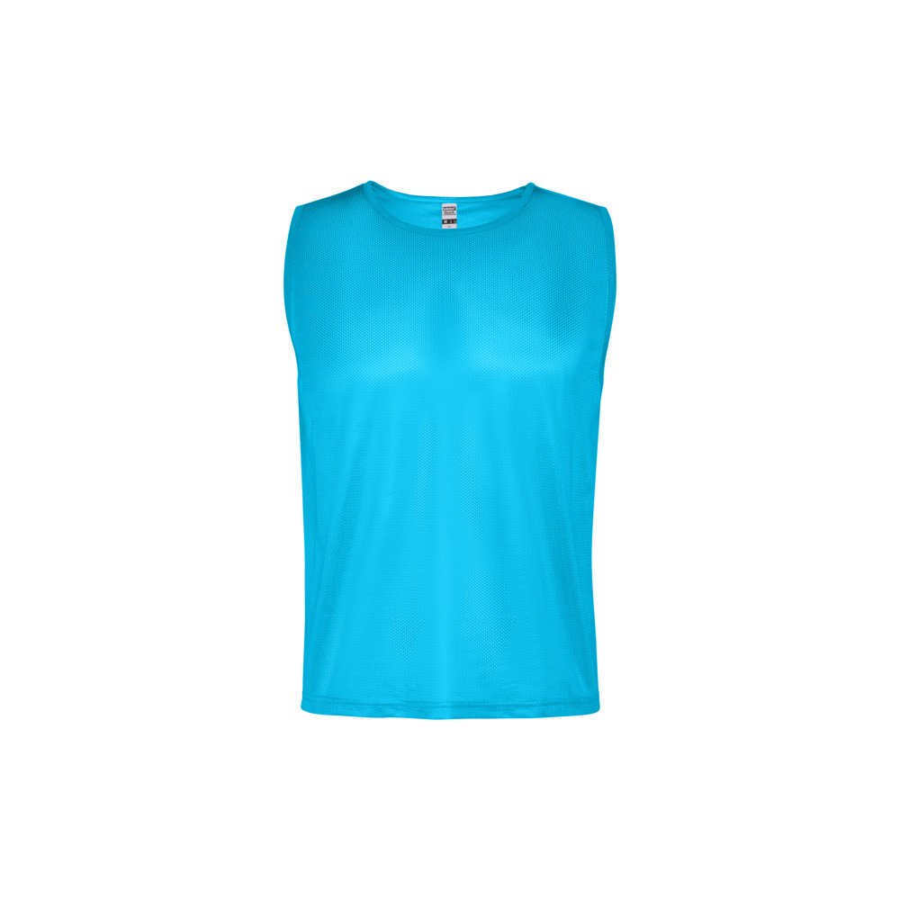 Unisex breathable sports pinnie.· Sewing trim in the same fabric in sleeve holes and neck. · Double stitching on the hem.