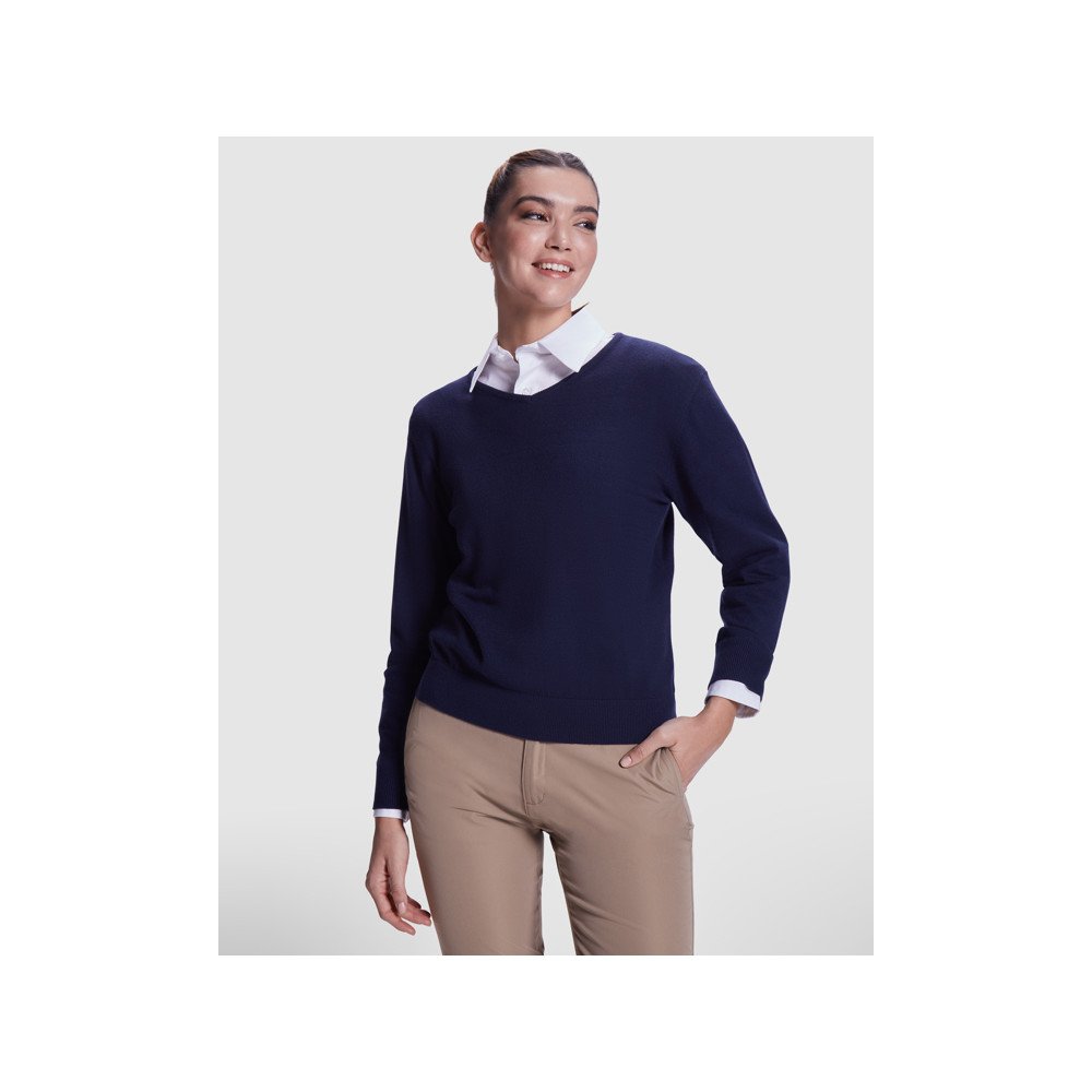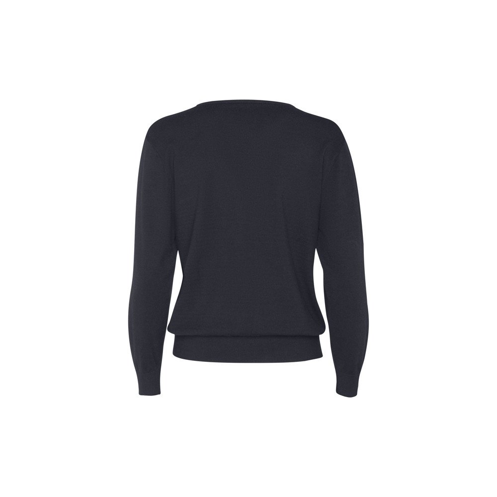 Fine knit V-neck jumper for women. Matching 1x1 ribbed neck, cuffs and hem.