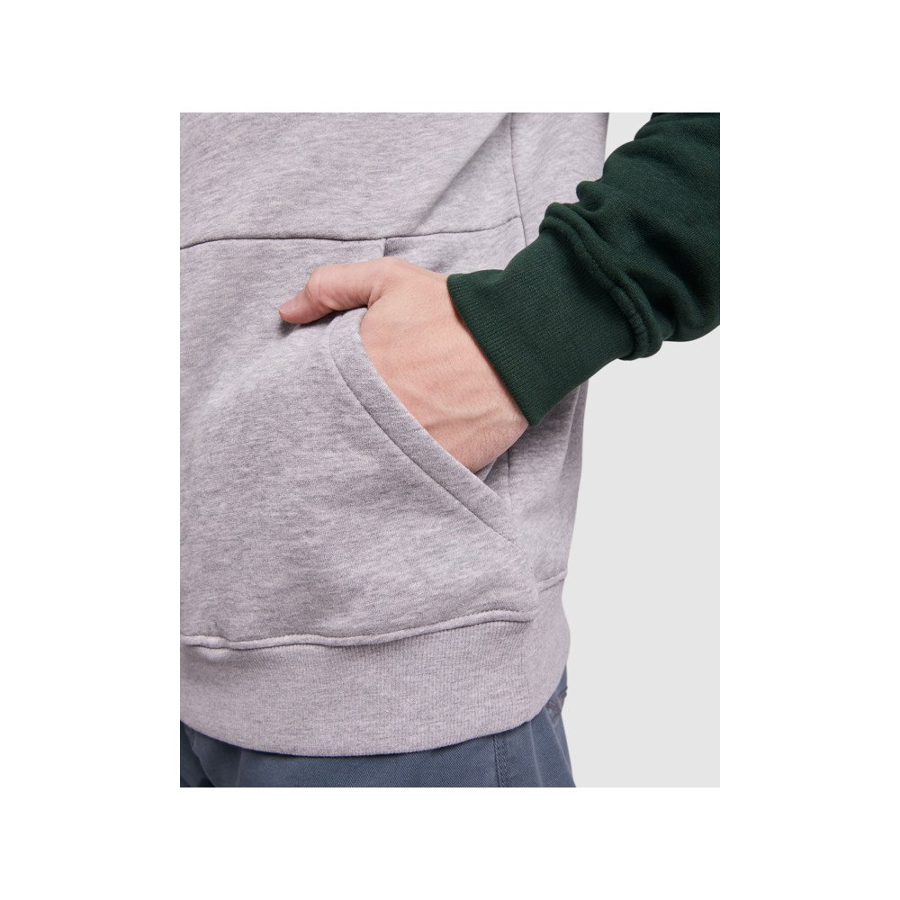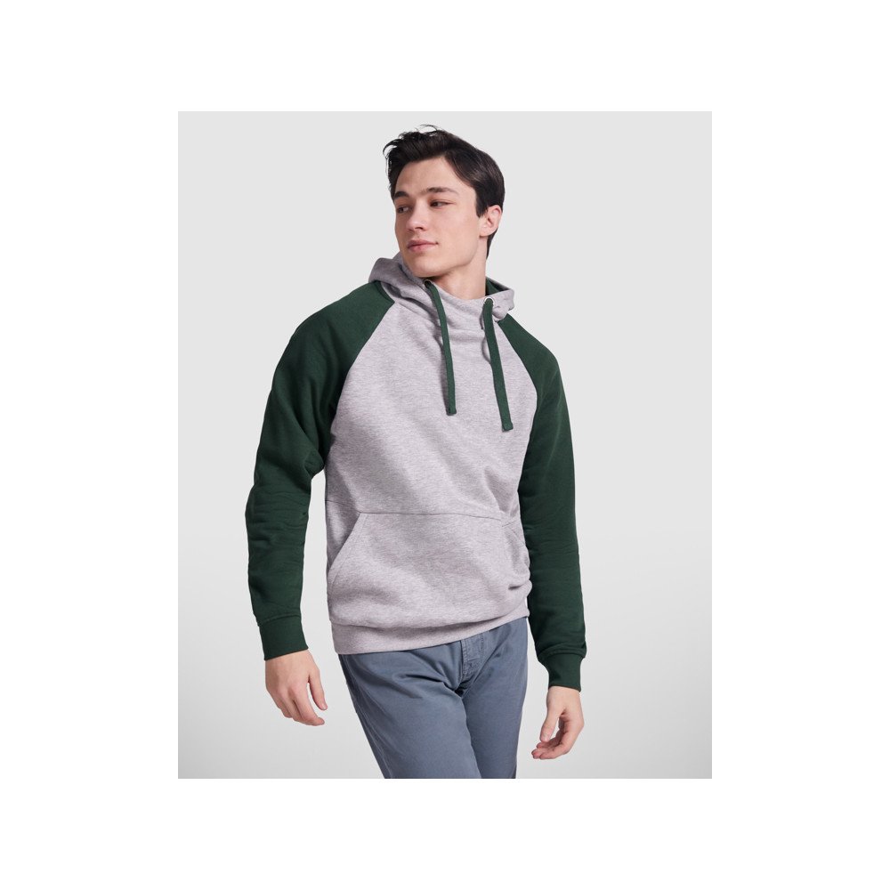 Two-colour unisex hoodie. Hood with crossed neck and metal eyelets. Contrasting inner hood, drawcord and raglan sleeves. Kangaroo pocket. Cuffs and hem in 1X1 elastane rib knit.