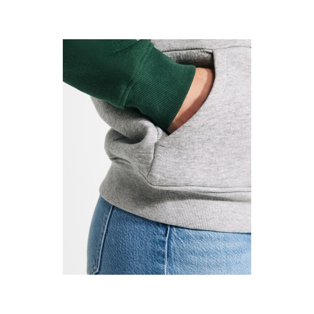 Two-colour unisex hoodie. Hood with crossed neck and metal eyelets. Contrasting inner hood, drawcord and raglan sleeves. Kangaroo pocket. Cuffs and hem in 1X1 elastane rib knit.