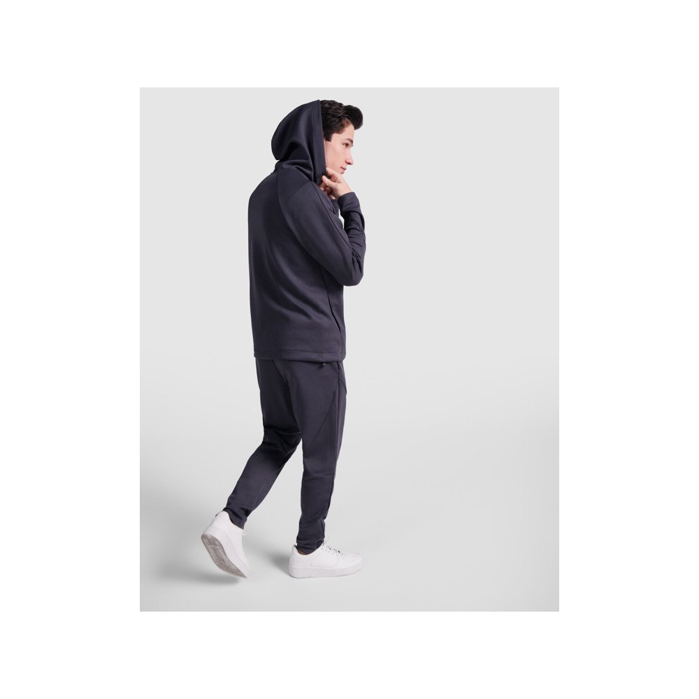 Hoodie in light fabric. One-piece pleated hood. Frontal side and sleeve seams. Pockets integrated in side seams. PVC adjuster with elastic cord on waistband. Matching Roly logo on left side hem.