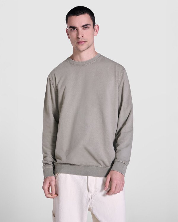 Unisex sweatshirt with crew neck, 100% Terry cotton acid-wash. 2x1 ribbed collar, cuffs, and hem in tone. Reinforced seams at cuffs, hem, waistband, and armholes. Tone-on-tone coverstitch at the neck.