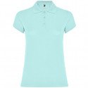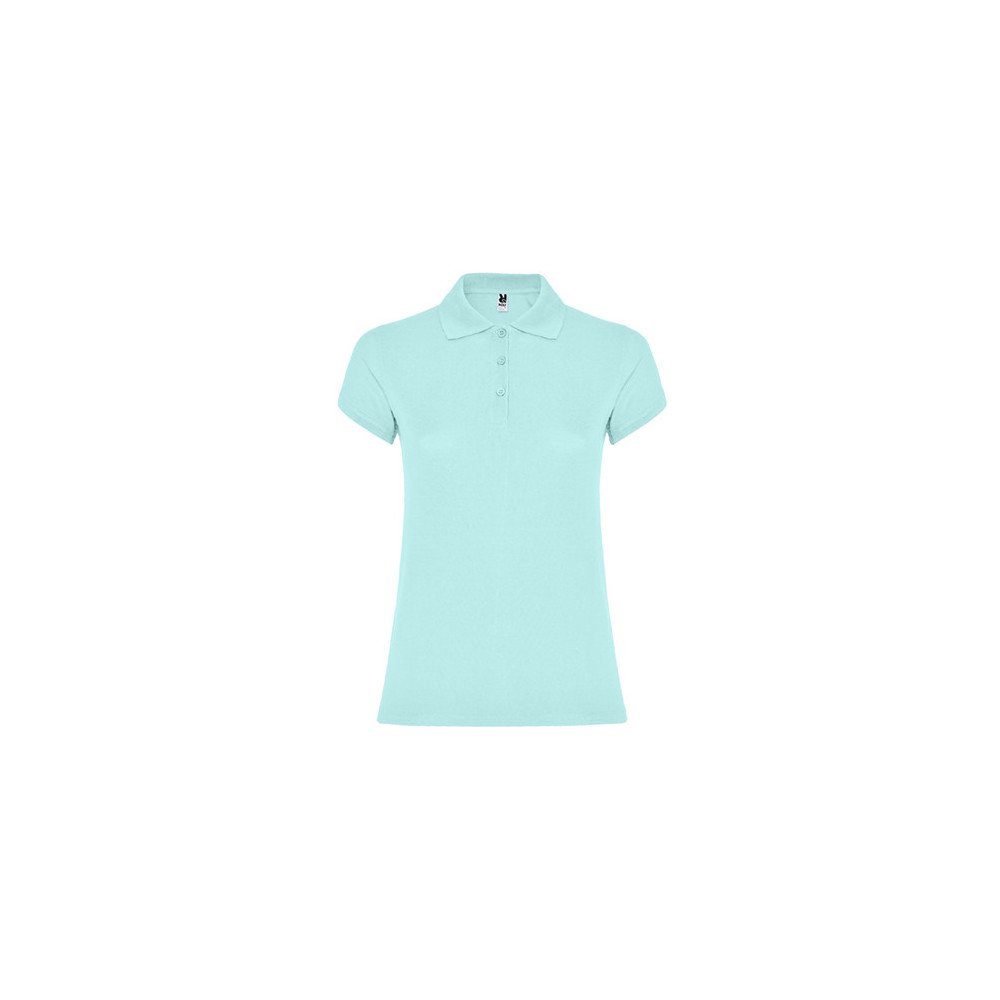 Short-sleeve polo shirt for women. Reinforced covered seams in interior collar. 1x1 ribbed collar and cuffs. Side seams and fitted cut. Narrow 3-button placket. Side slits.