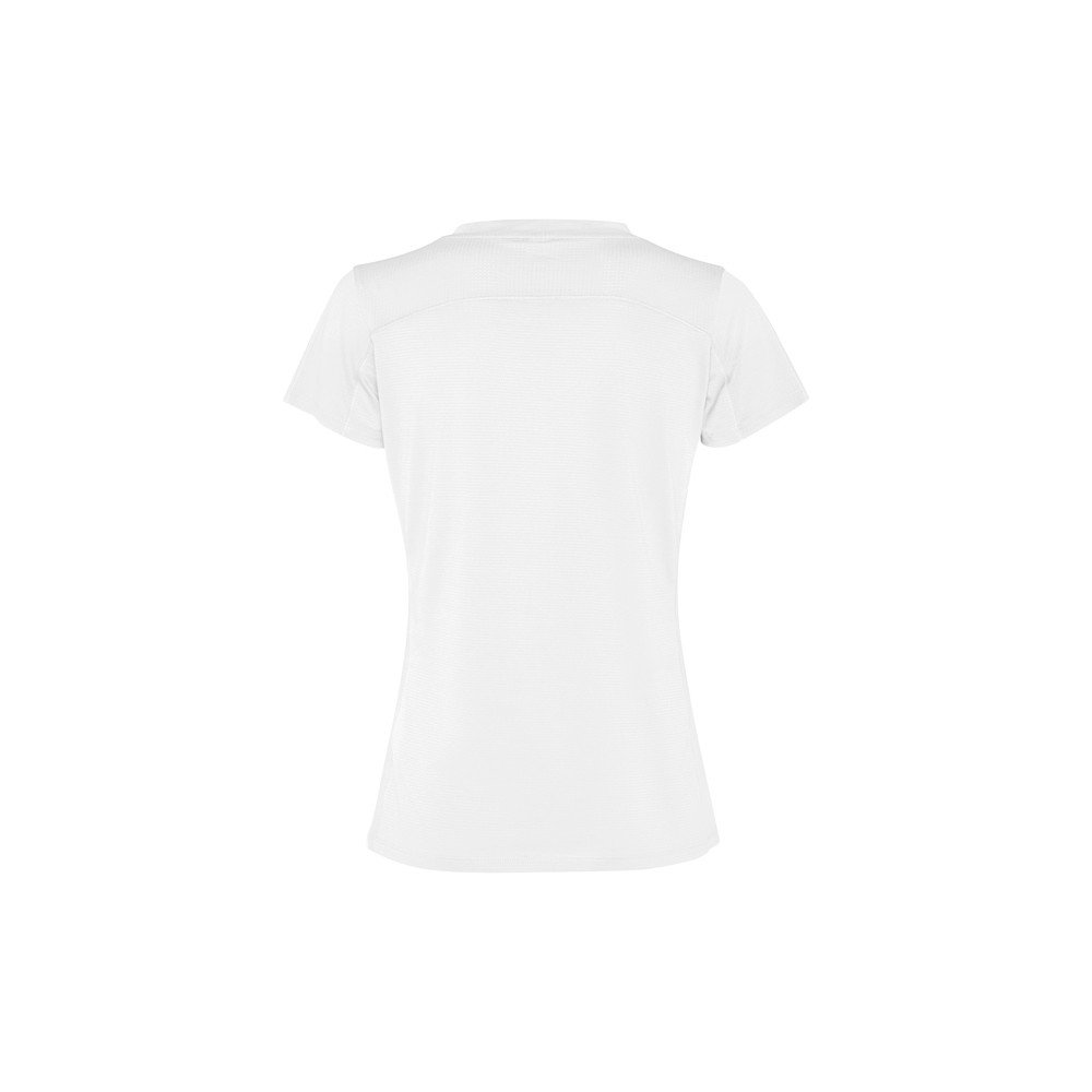 Women's short-sleeved technical t-shirt. Lightweight fabric made of recycled polyester.· Collar with crossed detail and coverseams.· Back yoke and sleeves in breathable fabric.· Forward and inclined seams on the sides and shoulders.· Rounded hem.· Combined in breathable and elastic fabrics.