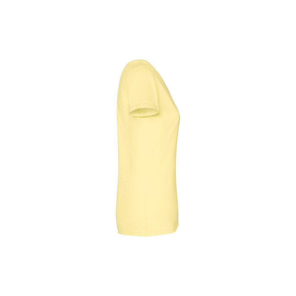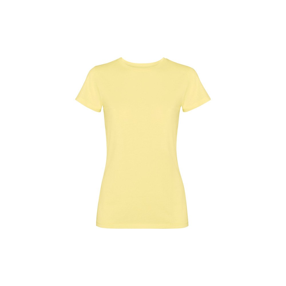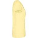 Women's short-sleeve t-shirt, 100% cotton with an acid-wash finish. 1x1 ribbed crew neck and side seams. Tone-on-tone coverstitch at the neck.