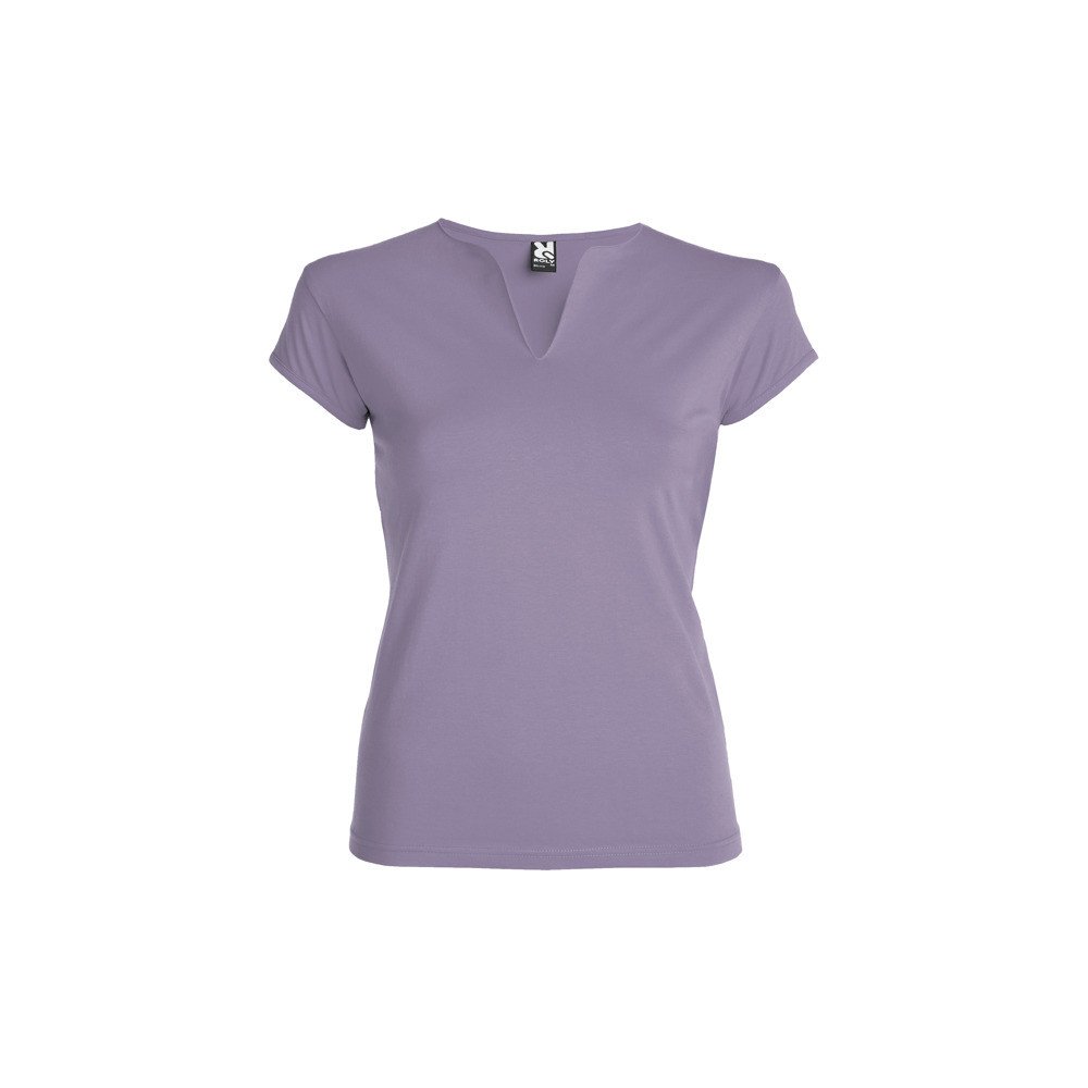 Fitted t-shirt with crew neck and v-opening on front. Trimmed half-sleeve and side seams.