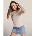 Thick short-sleeve t-shirt for women in cotton. Wide 2x1 ribbed crew neck and sleeve edging. Reinforced covered seams in collar. Side seams. Matching Roly logo on left side hem. Wide seam on hem.