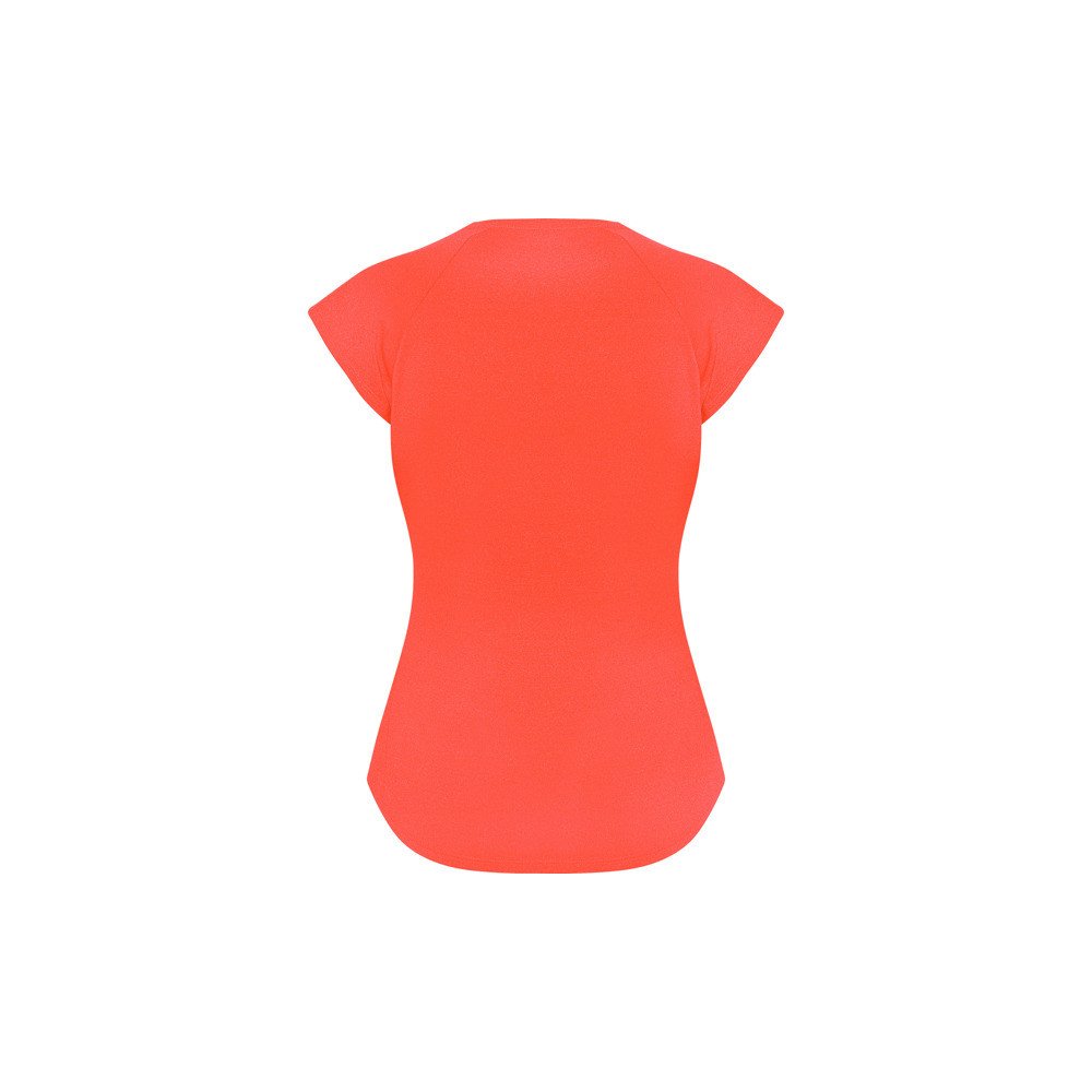 All-sports technical t-shirt for women with raglan style short-sleeve. V-neck. Polyester fabric, cotton feel. Fitted cut.