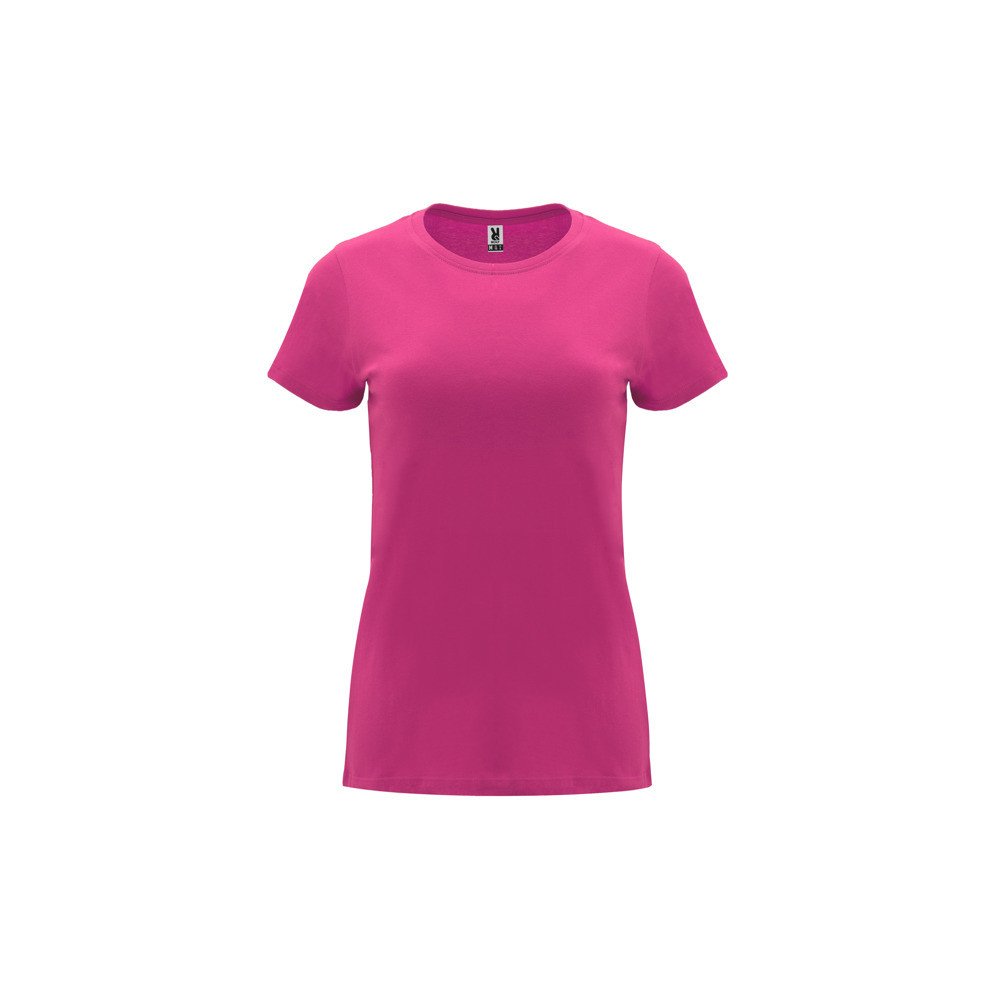 Fitted short-sleeve t-shirt for women. 1x1 ribbed crew neck. Reinforced covered seams in collar.