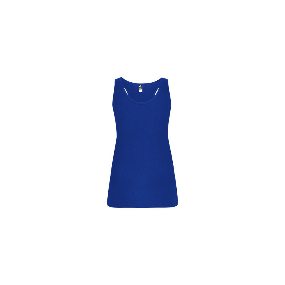 Slim-fit tank top with ribbed armholes and loose and rolled ribbed collar. Racerback and side seams.