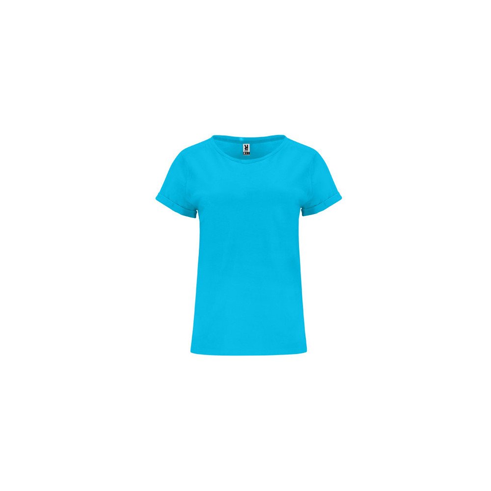 Short-sleeve t-shirt for women. Crew neck in the same fabric and matching covered seams. Rolled hem in sleeves reinforced in four points.