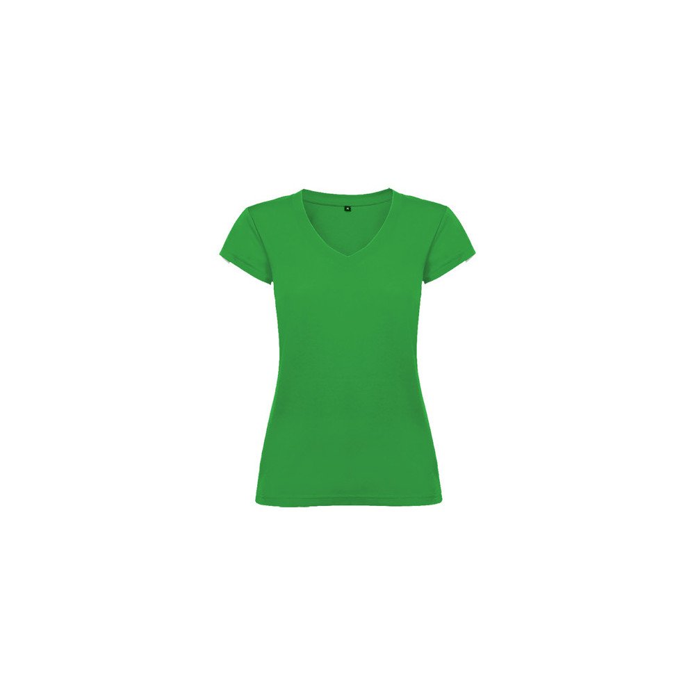 V-neck short-sleeve t-shirt for women with 1x1 ribbed finishes. Slim-fit with side seams.
