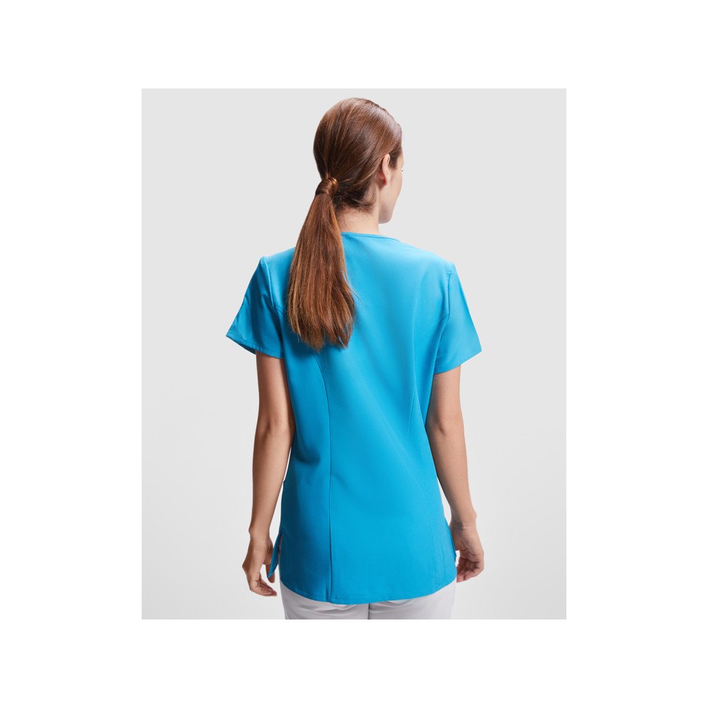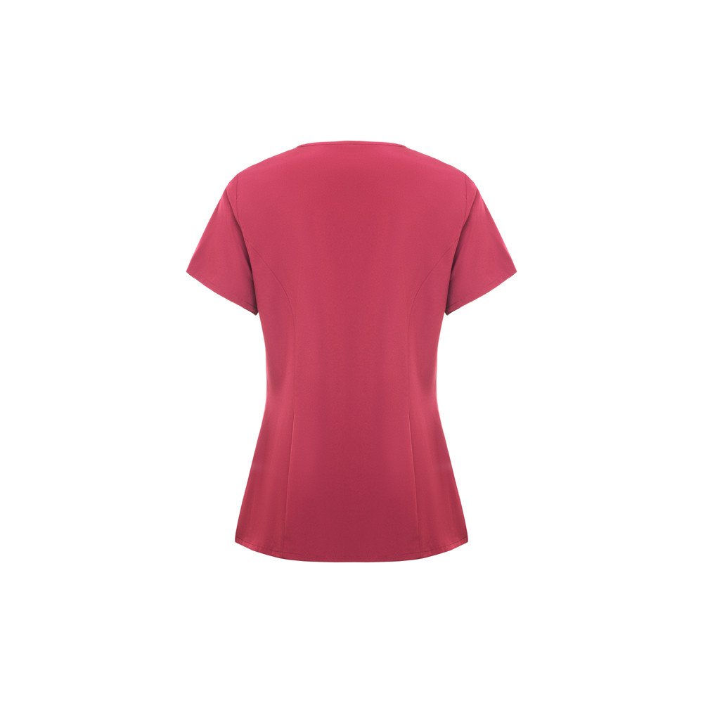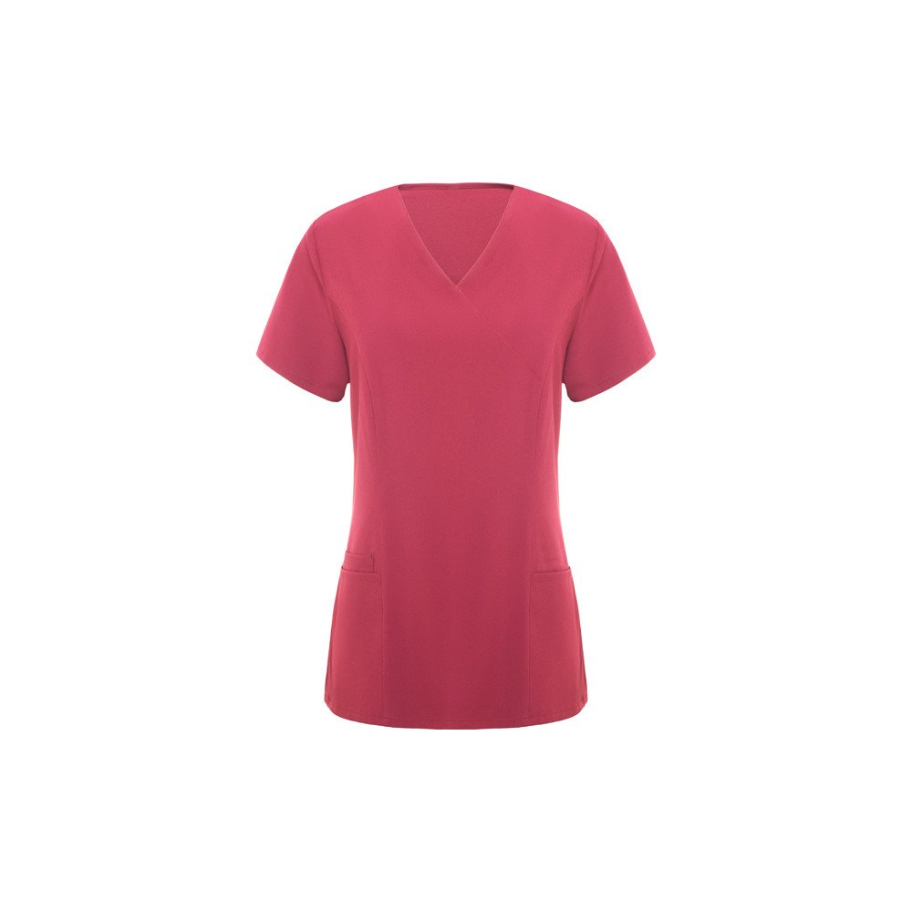Short-sleeve service top for women.· Crossed peak neckline.· Two French pockets.· Side slits.