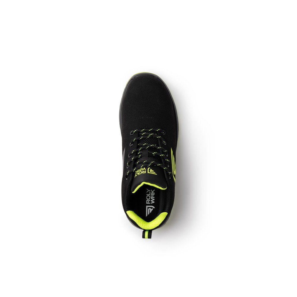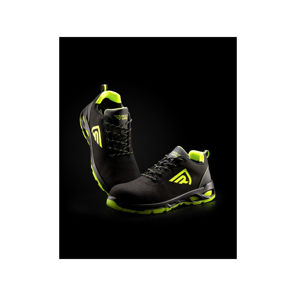 Sports-style workwear shoes, made with nubuck microfibre with reinforcement in the heel area. · Toe cap: Fiberglass, 200 joules· Puncture-resistant insole: Woven PS textile fibres, 3mm· Sole: Dual Density Polyurethane· Fastening: with shoelaces· Reinforcement: Heel· Textile cut: Water-repellent microfibre