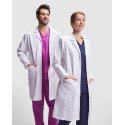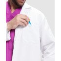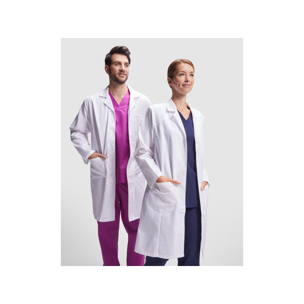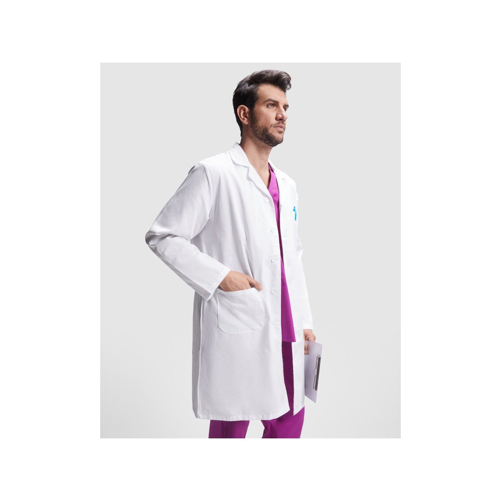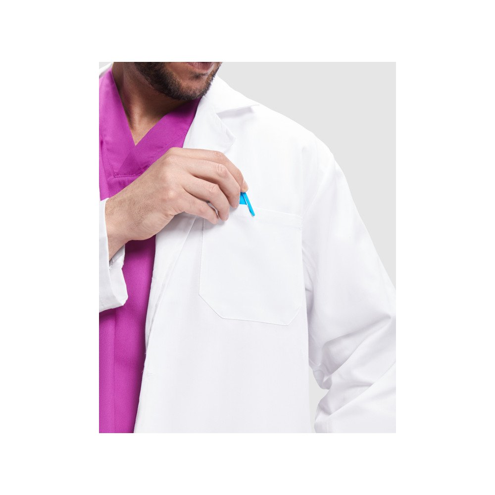 Long-sleeve service gown:· Flap collar.· Front opening with 5 matching buttons.· One chest and two side pockets.· Back waistband