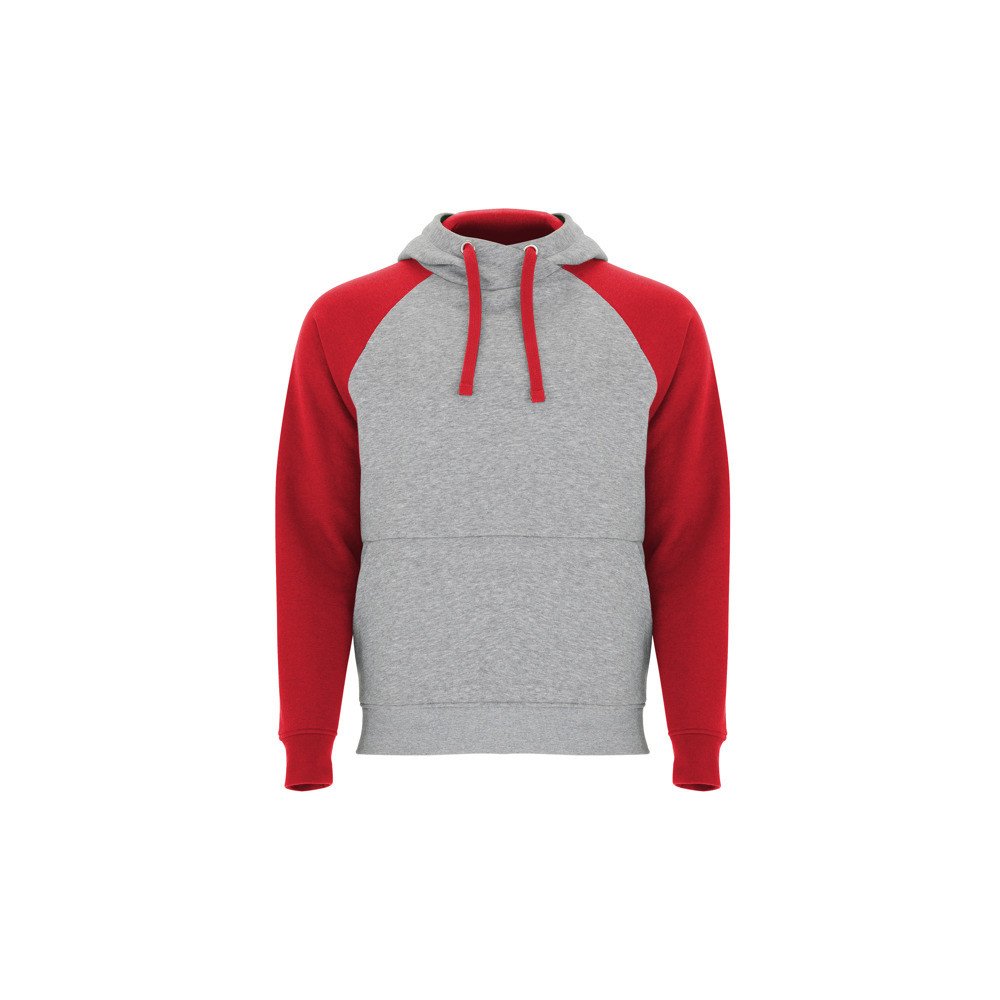 Unisex-pluus raglaanvarrukaga. Ristkaela, metallist aasade ja lameda nööriga kapuuts. Kontrastsed varrukad, sisekate ja nöör. Känguru tasku. 1X1 elastaanribikoes kätised ja alläär.