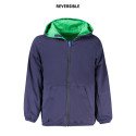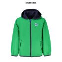 Pika varrukatega jakk kapuutsiga, pööratav roheline/sinine, 2 välist taskut, 2 sisetaskut, lukuga, aplikaatsioon, trükk, logo