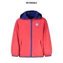 Pika varrukatega jakk kapuutsiga, pööratav punane/sinine, 2 välist taskut, 2 sisetaskut, lukuga, aplikaatsioon, trükk, logo