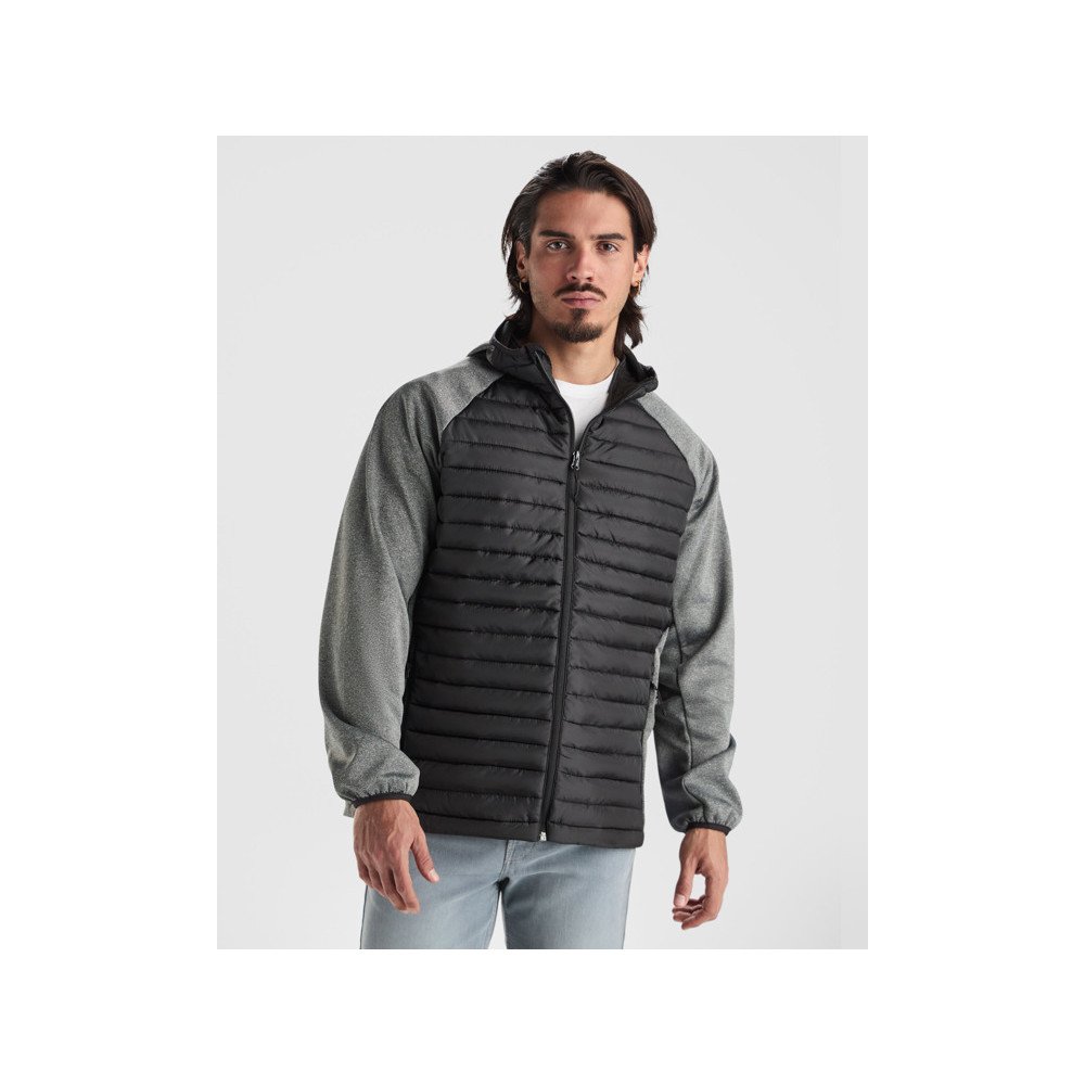 Meeste jope kahe kanga kombinatsioonis:Fikseeritud reguleeritud kapuuts.Raglanist varrukad.Softshell kangast varrukad, külgpaneelid ja kapuuts.Tepitud sulgedest puutetundlik kangas eest ja tagant.Vastava lõuakaitse ja tõmburiga ümberpööratud tõmblukk.Kaks tõmblukuga taskut.Sobiv elastne ääris kraes, kätistes ja allääres.