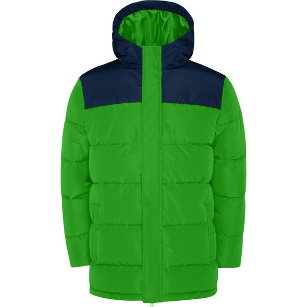 Fikseeritud kapuutsiga polsterdatud jakk. Nööbiga kaetud eesmine tõmblukk. Lõuakaitse. Kaks tõmblukuga taskut. Elastsed mansetid. Juurdepääs selja ja vasaku rinna töötlemiseks.