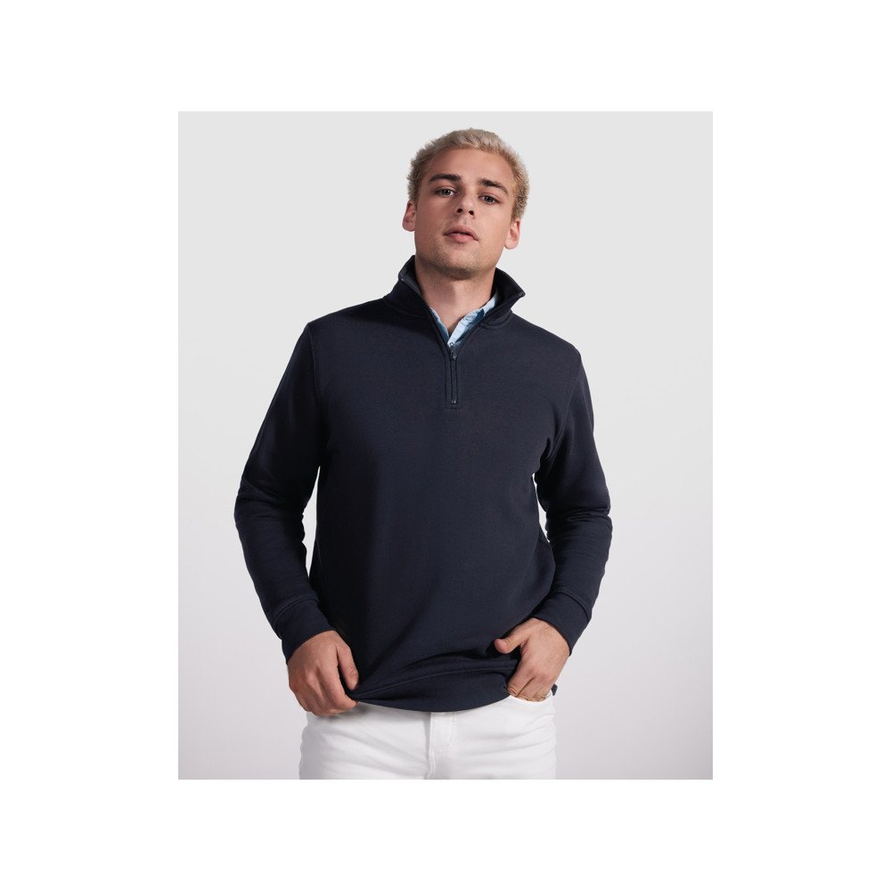 Pusero poole tõmblukuga ja polokaelaga. 1 x 1 ribaga kätised ja vöökoht. Tugevdatud õmblused krae siseküljel.