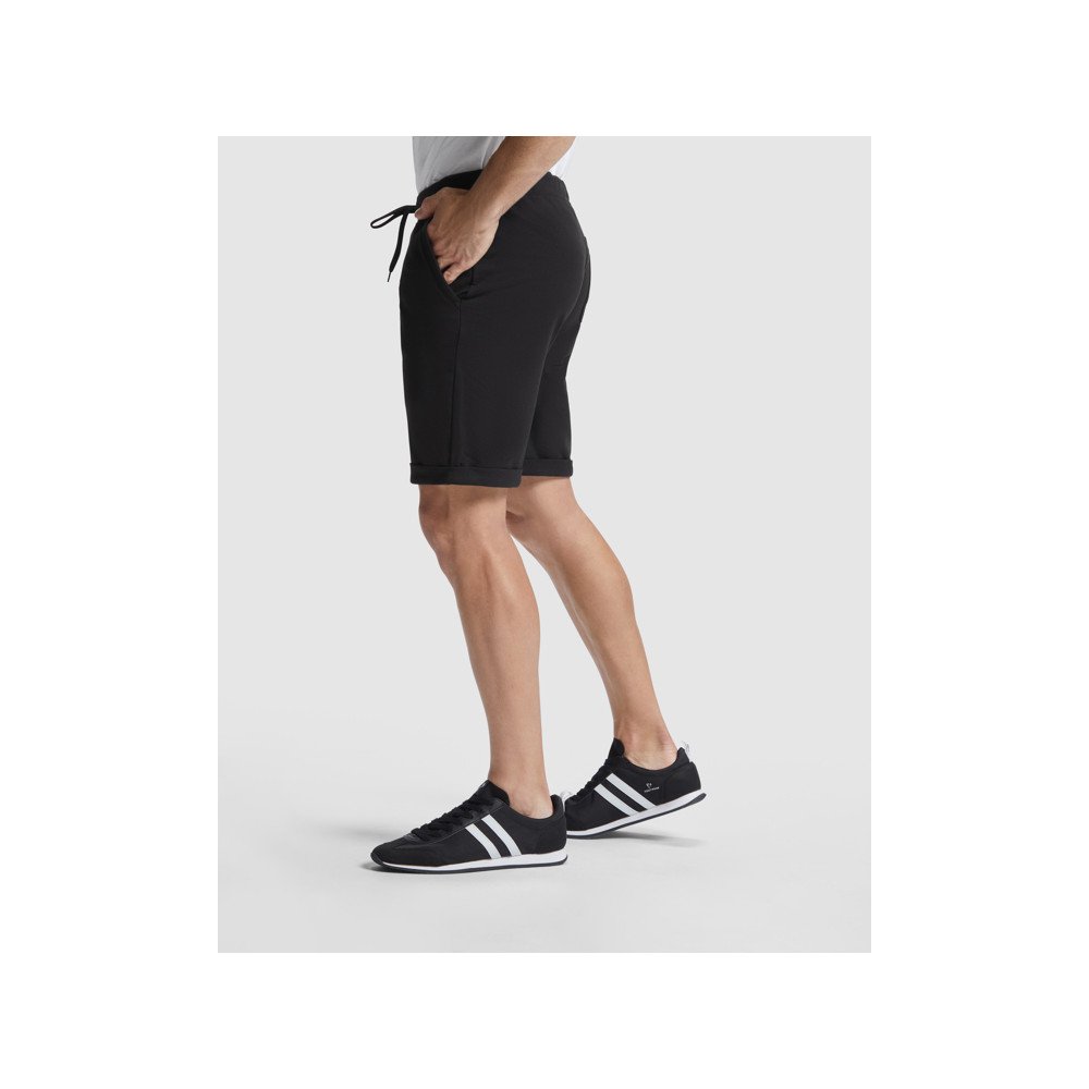 Vabaaja lühikesed püksid rullitud alläärtega. Elastne vöökoht reguleeritava nööriga ja metallist aasadega. Küljetaskud ees ja üks taga.