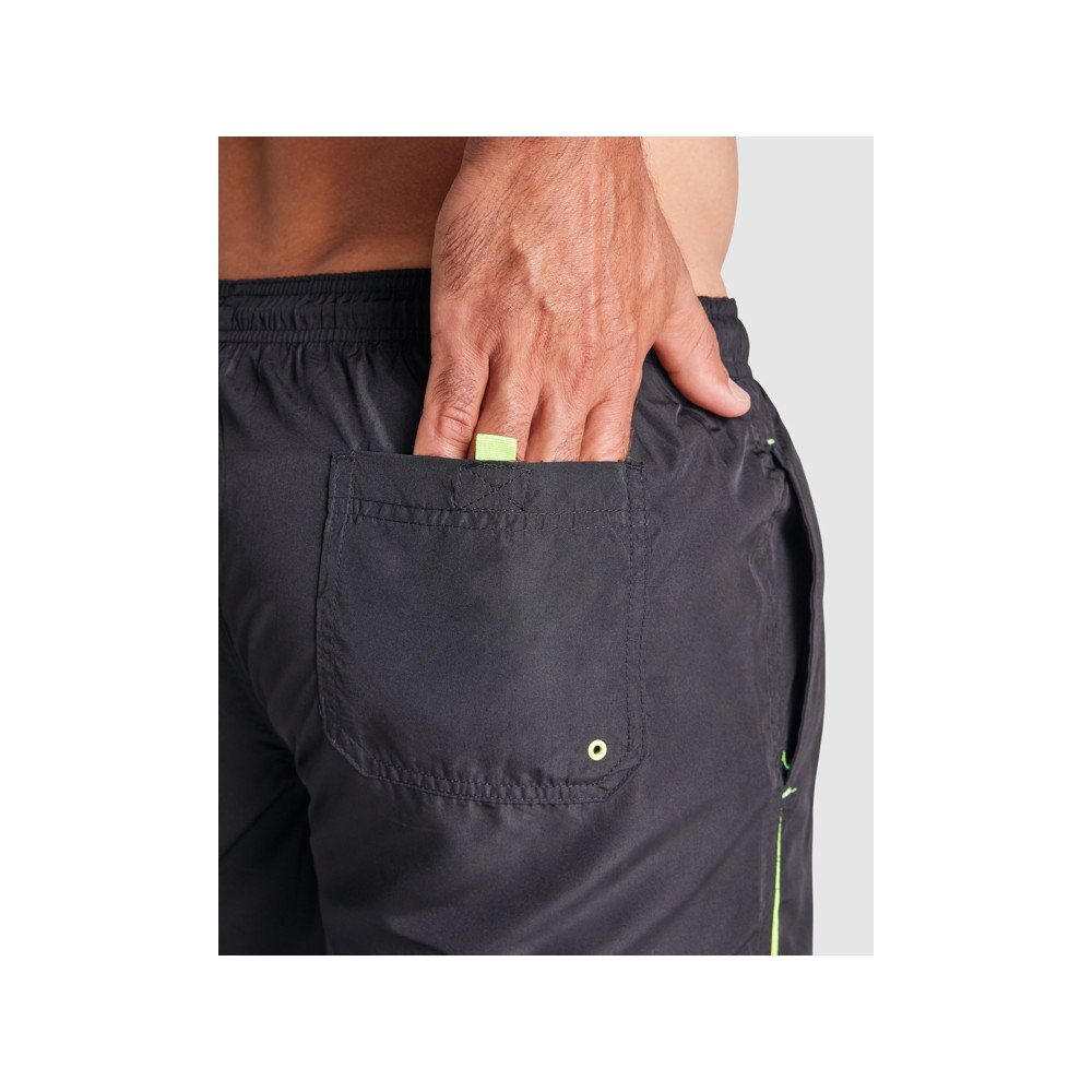 Kontrastsete detailidega ujumispüksid ja kaks küljetaskut. Elastne vöökoht dekoratiivse reguleeritava nööriga ja kontrastsete metallist aasadega. Kontrastsed külgmised äärised. Tagatasku tühjendusaasaga. Inner slip.