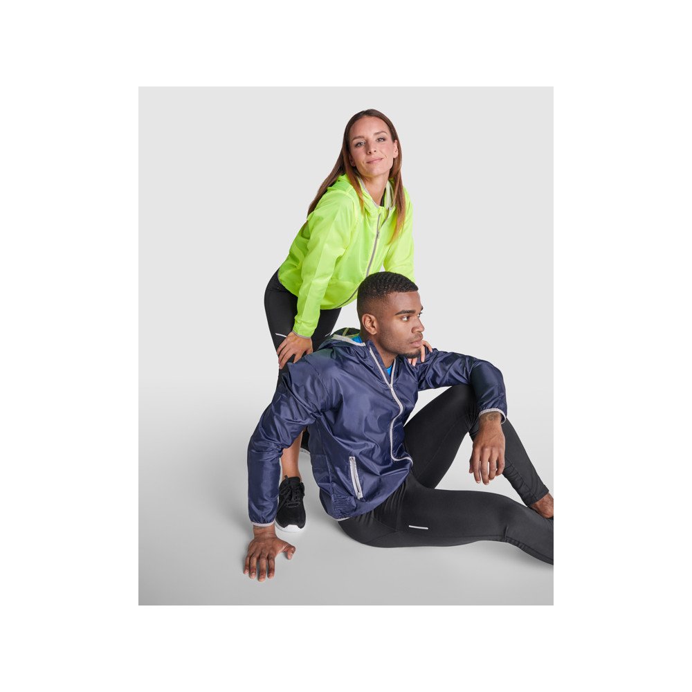 Unisex kapuutsiga tuulepluus. Kontrastse lõuakaitse ja tõmburiga keskmine tõmblukk. Kontrastsete hästi nähtava tõmblukuga küljetaskud. Rõiva kokkupanemiseks tagaküljel takjakinnitusega känguru tasku. Kontrastse elastse äärisega kapuuts, kätised ja alläär. Sisemine kapuuts võrguvoodriga ja kaetud õmblustega.